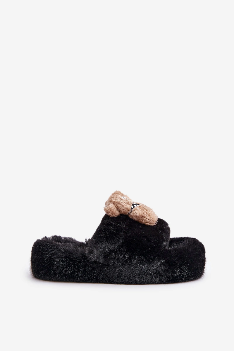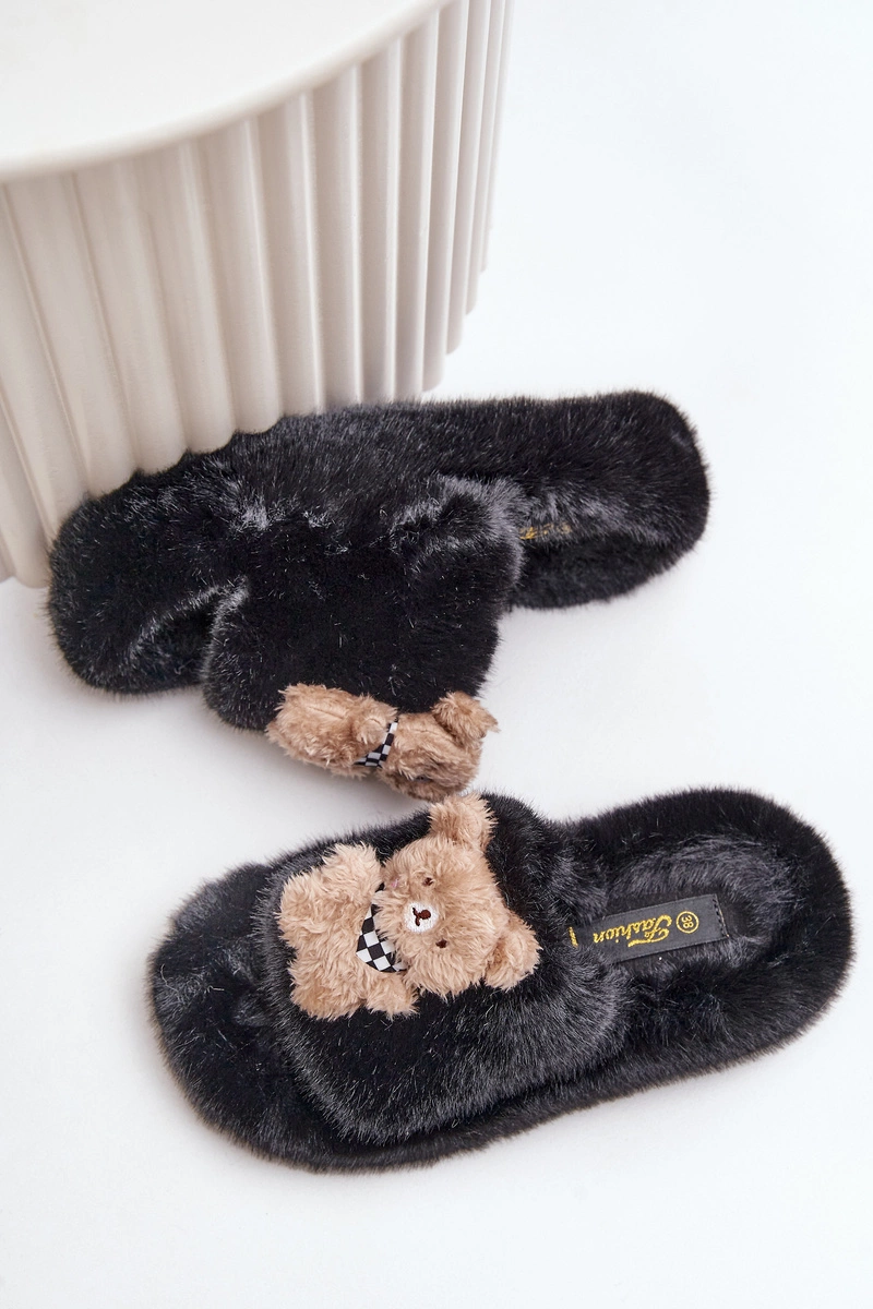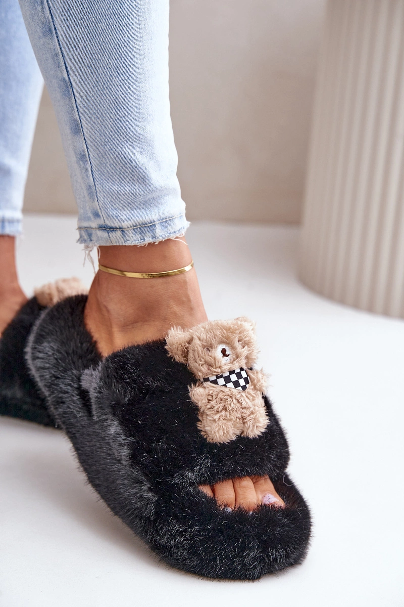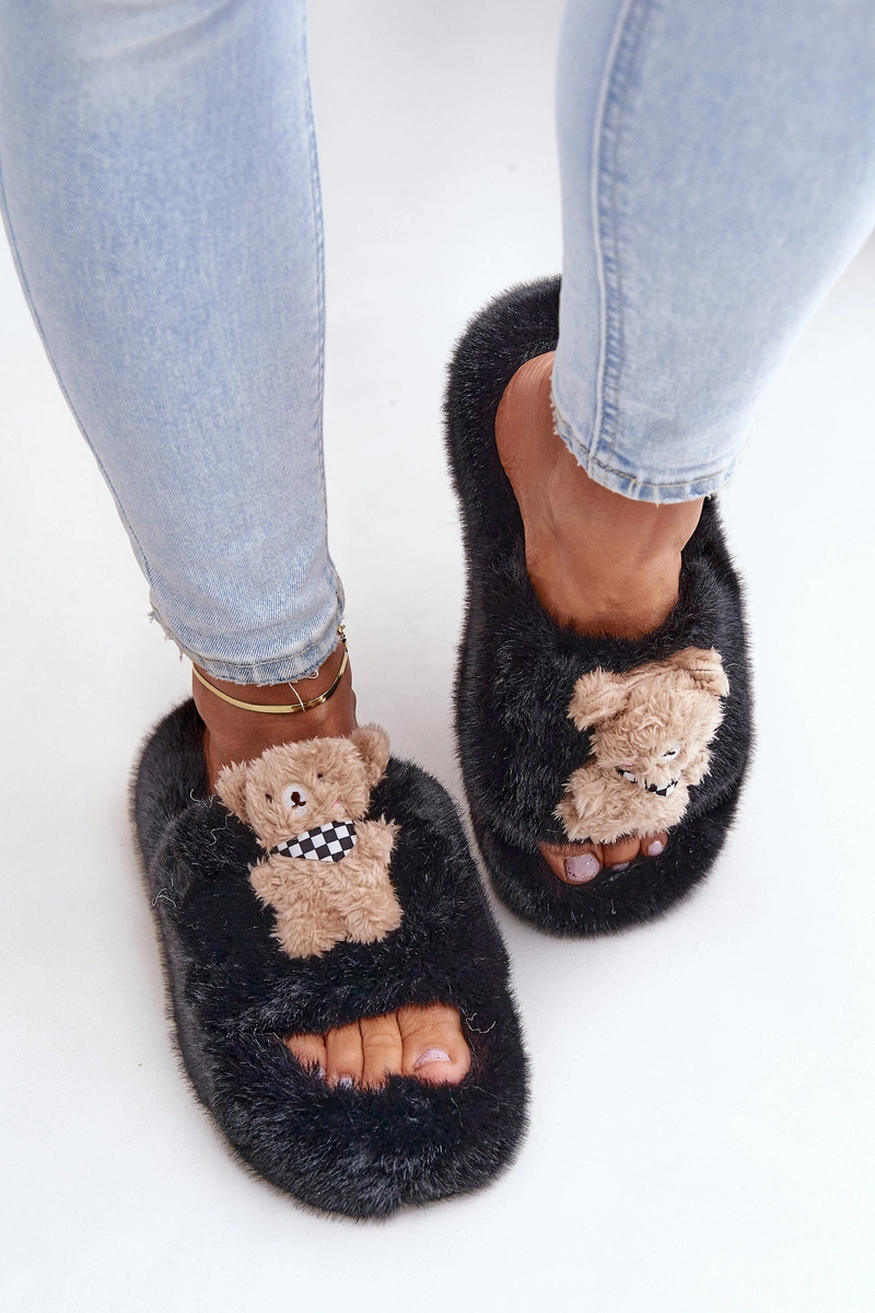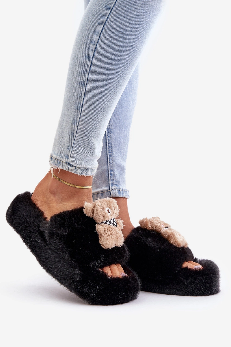 Futrzane Kapcie Damskie Z Misiem Czarne Romania