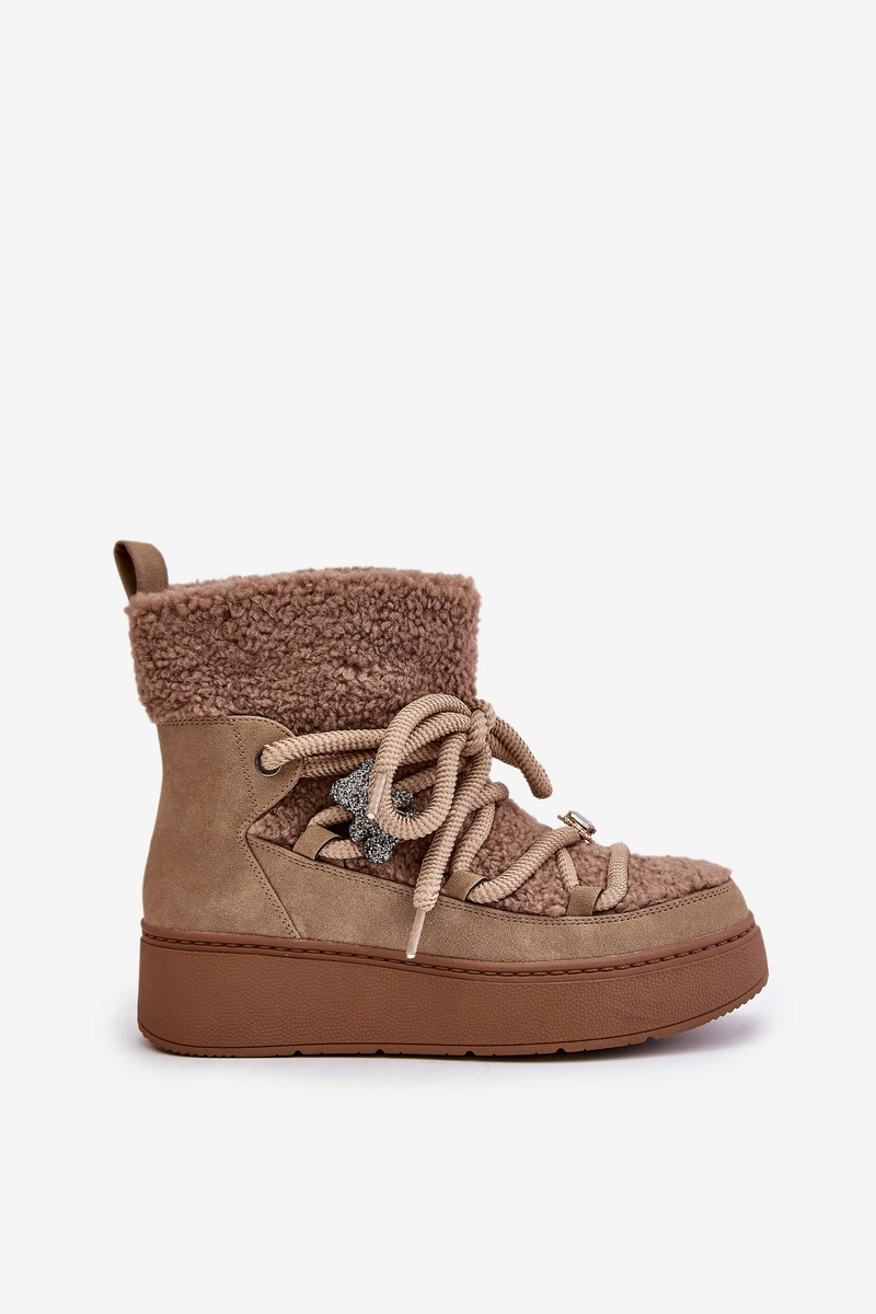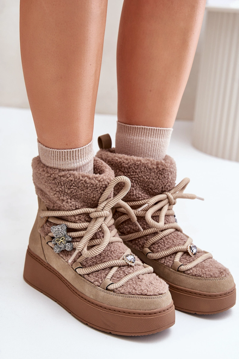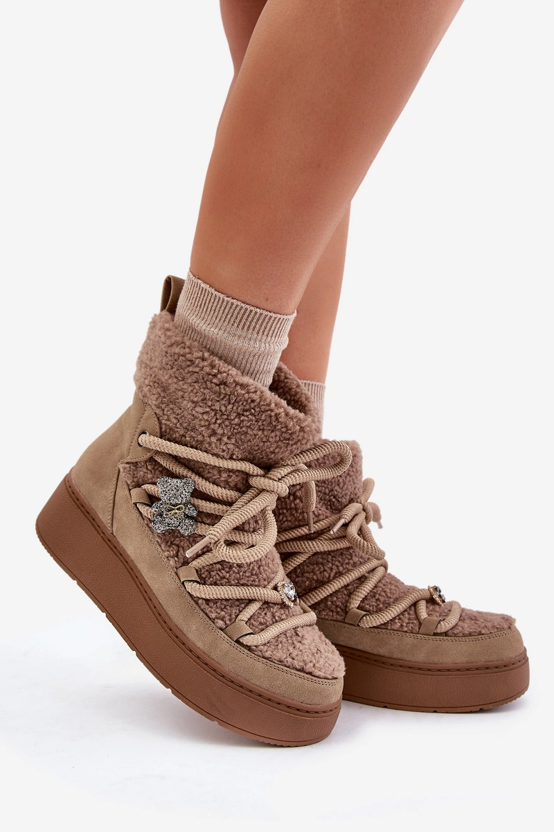 Śniegowce Damskie Z Przypinkami I Futerkiem Typu Baranek Brązowe Almatiza
