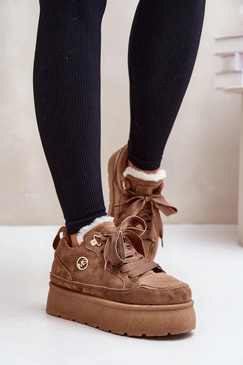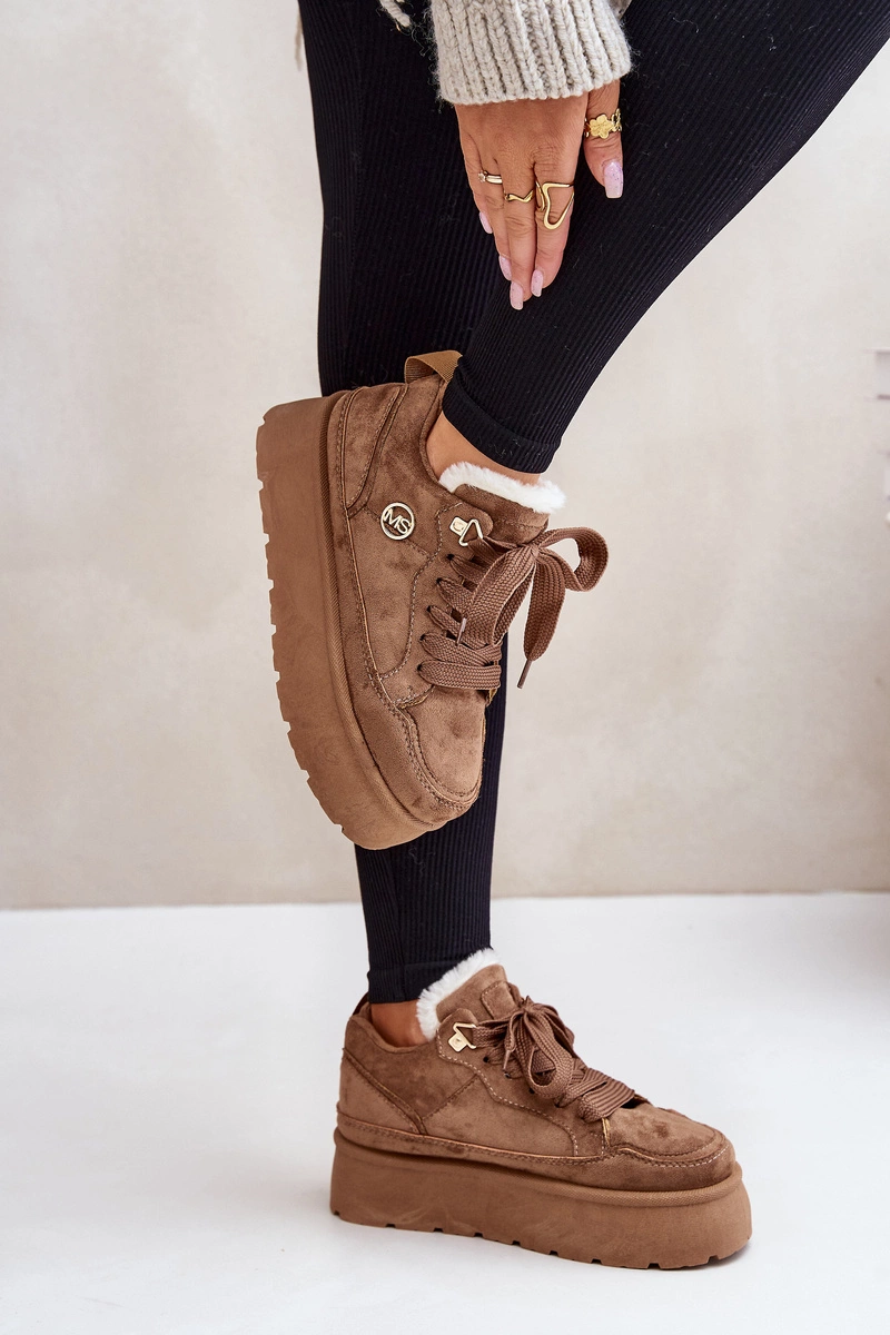 Ocieplane Futerkiem Sneakersy Damskie Na Platformie Brązowe Velarisea