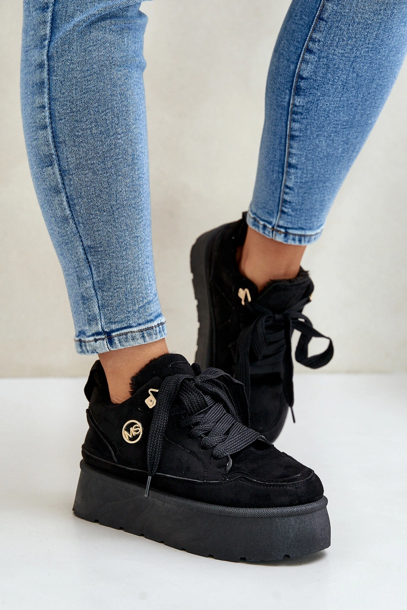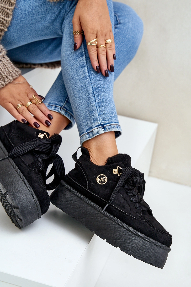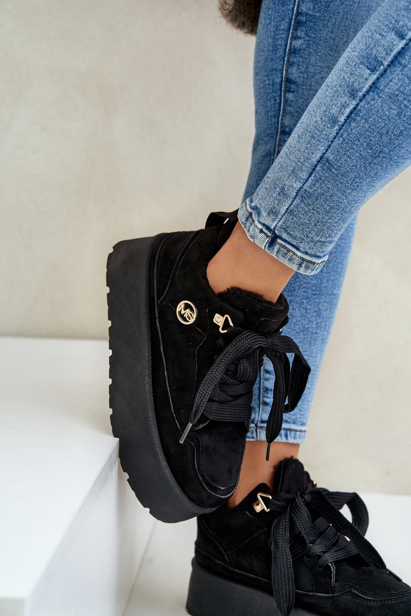 Ocieplane Futerkiem Sneakersy Damskie Na Platformie Czarne Velarisea