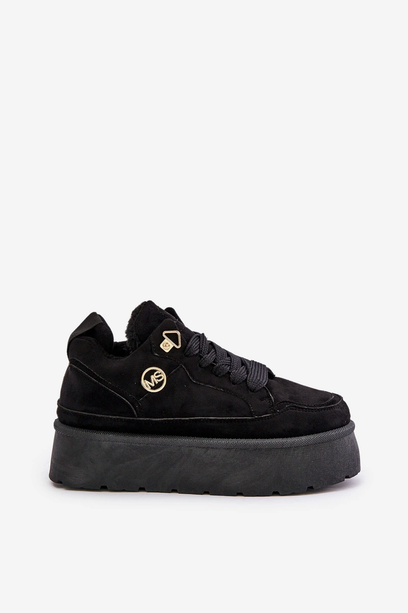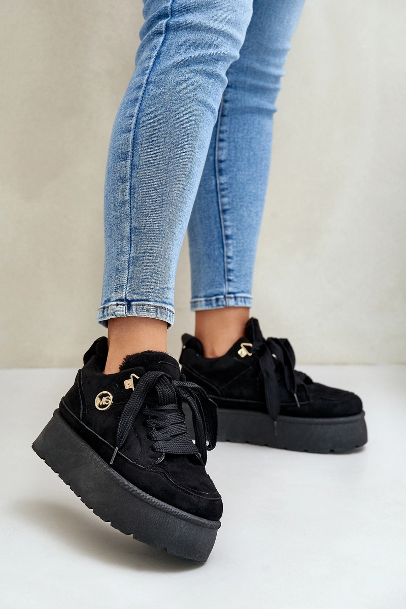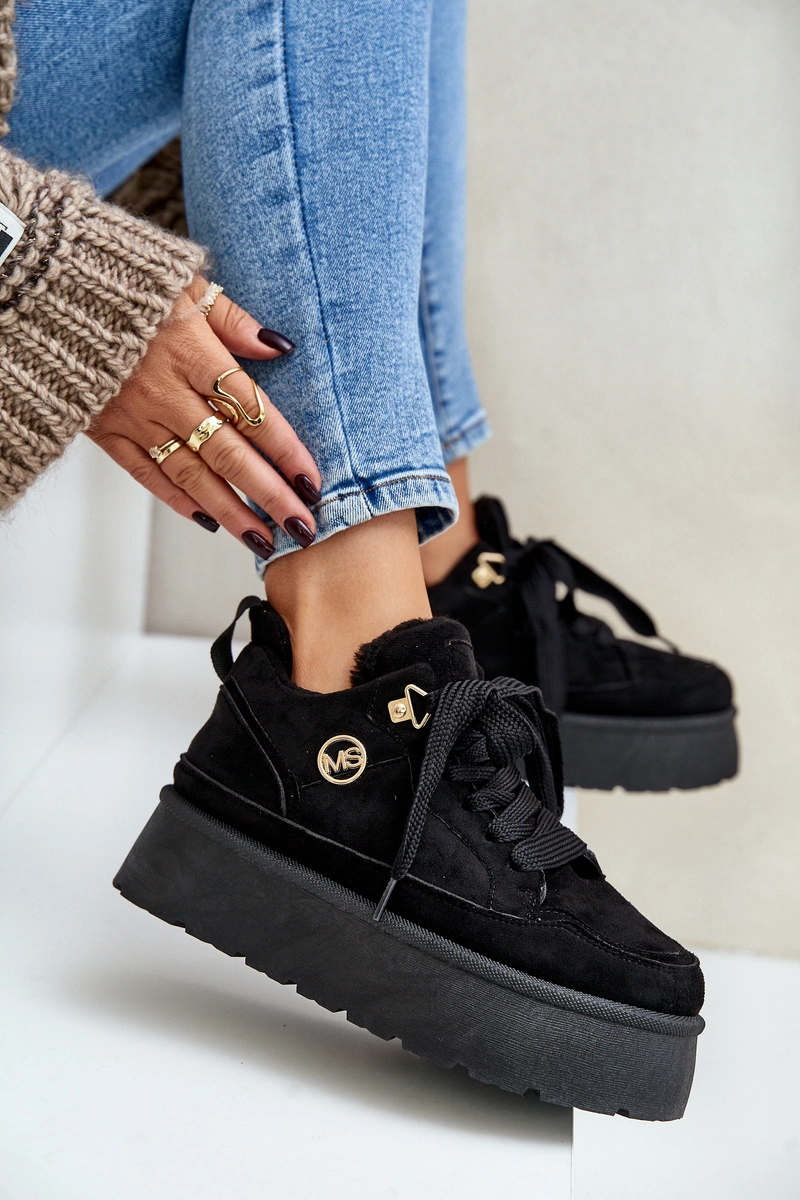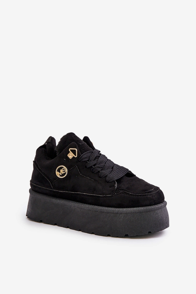 Ocieplane Futerkiem Sneakersy Damskie Na Platformie Czarne Velarisea