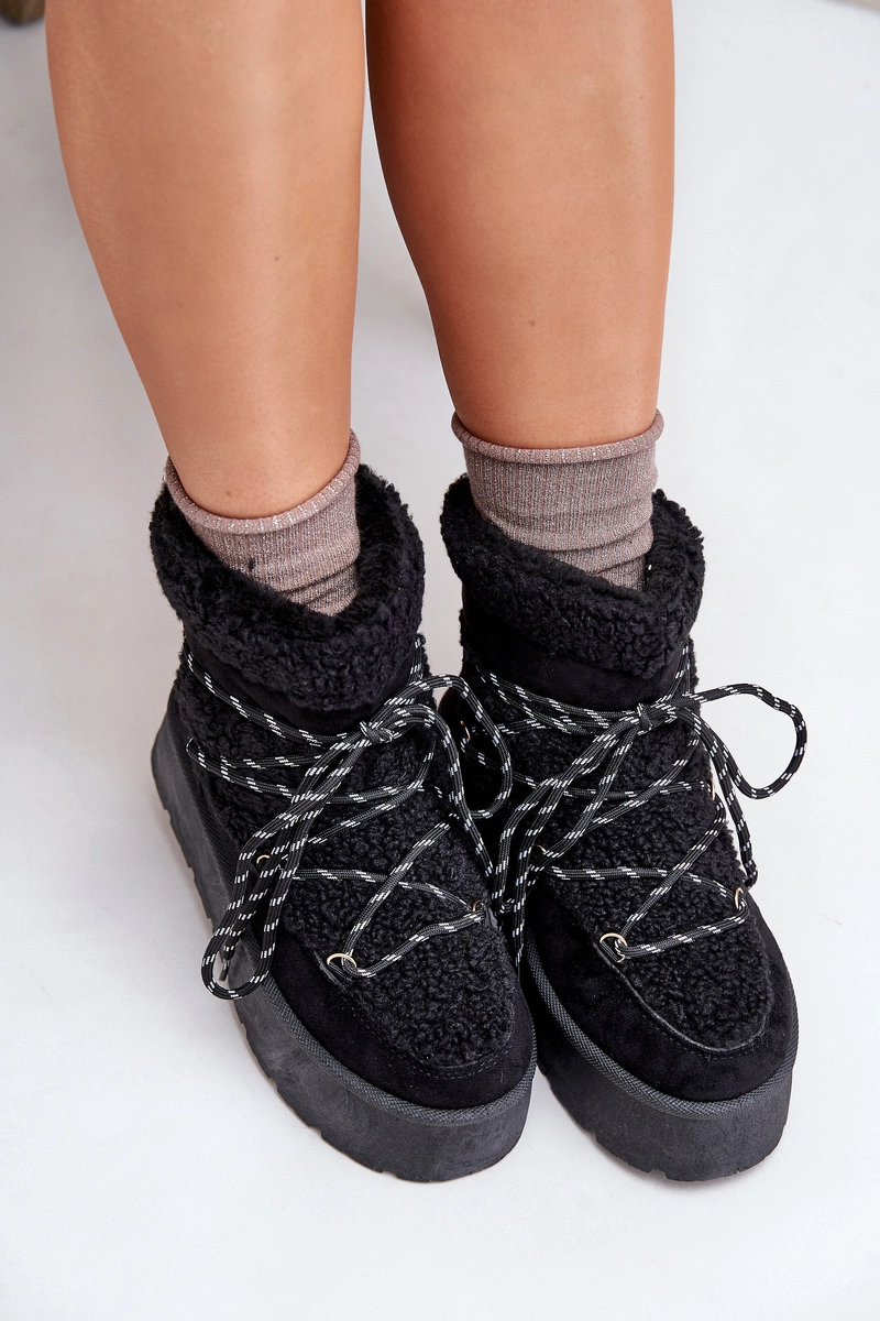 Śniegowce Na Platformie Z Wiązaniem Czarne Izathiel