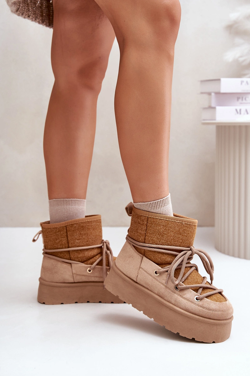 Śniegowce Z Wiązaniem Na Platformie Brązowe Mavora