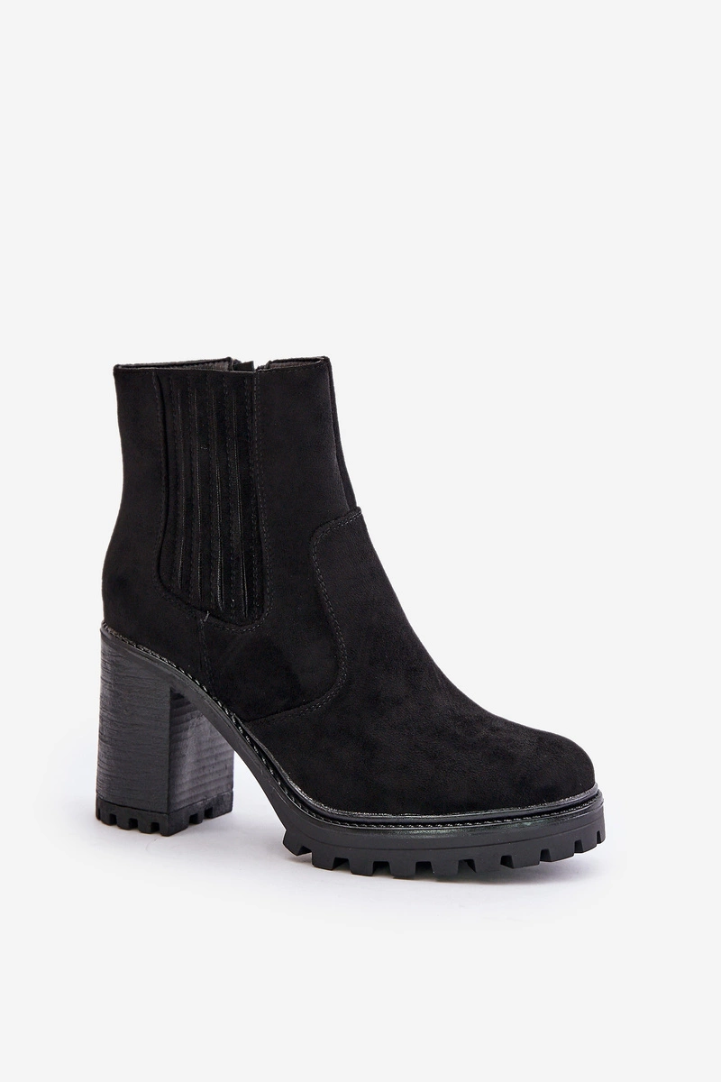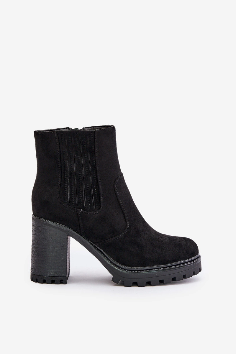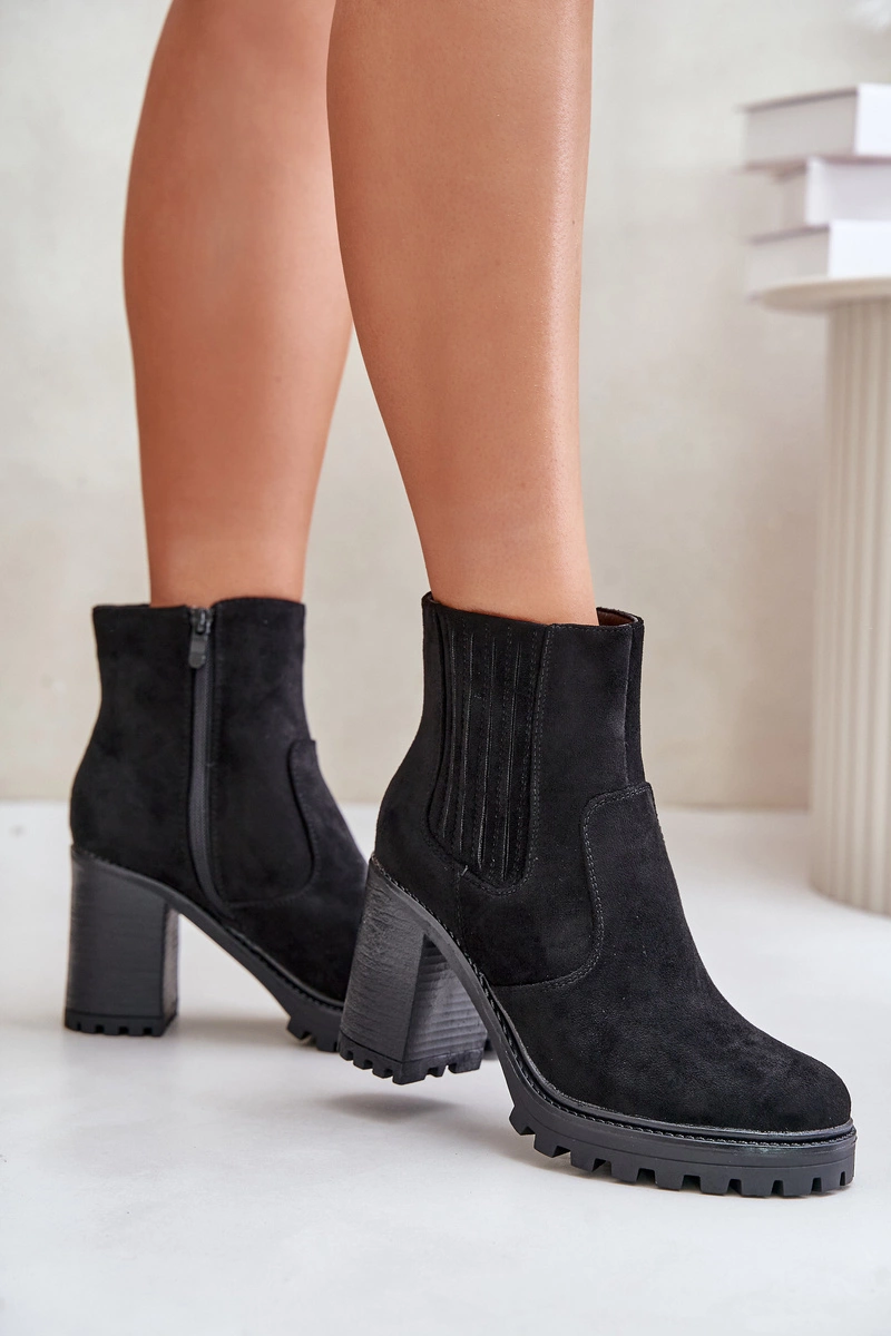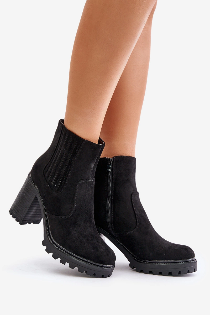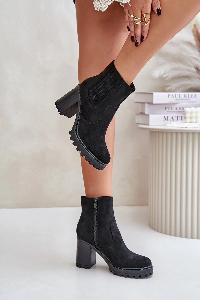 Botki wykonane z eko zamszu na obcasie typu słupek to doskonały wybór na każdą okazję. Zapinanie na zamek ułatwi zakładanie i zdejmowanie obuwia. Noski zaokrąglone. Idealne zarówno do casualowych, jak i bardziej formalnych outfitów! Przy wyborze rozmiaru prosimy sugerować się tabelą rozmiarów.