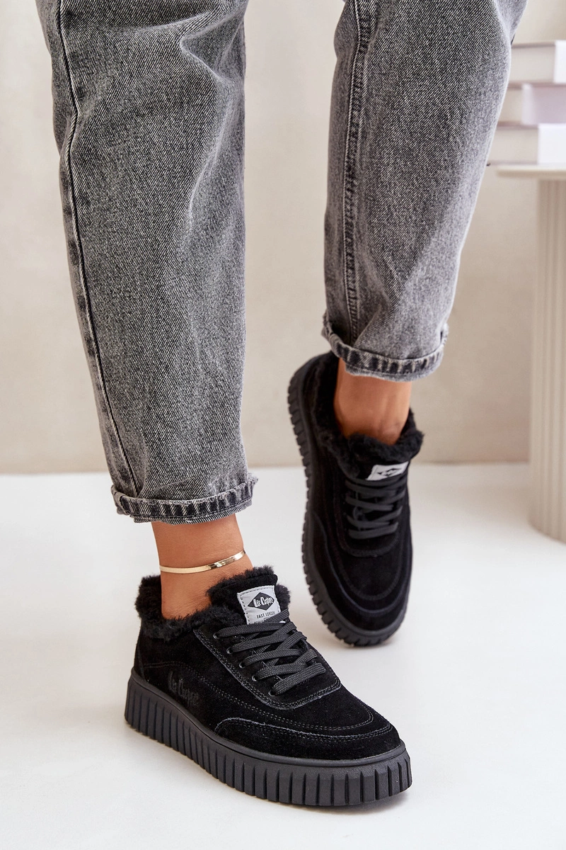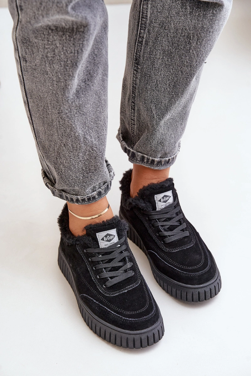 Skórzane Sneakersy Damskie Ocieplane Futerkiem Lee Cooper LCJ-24-01-2973 Czarne