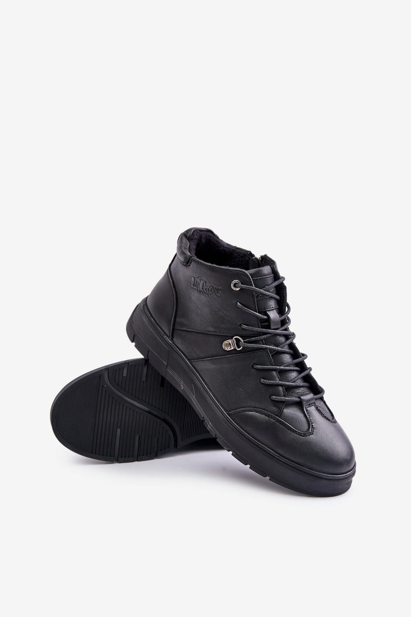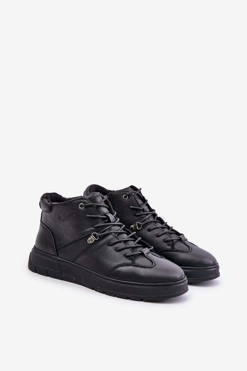 Skórzane Ocieplane Botki Sneakersy Męskie Lee Cooper LCJ-24-33-2913 Czarne