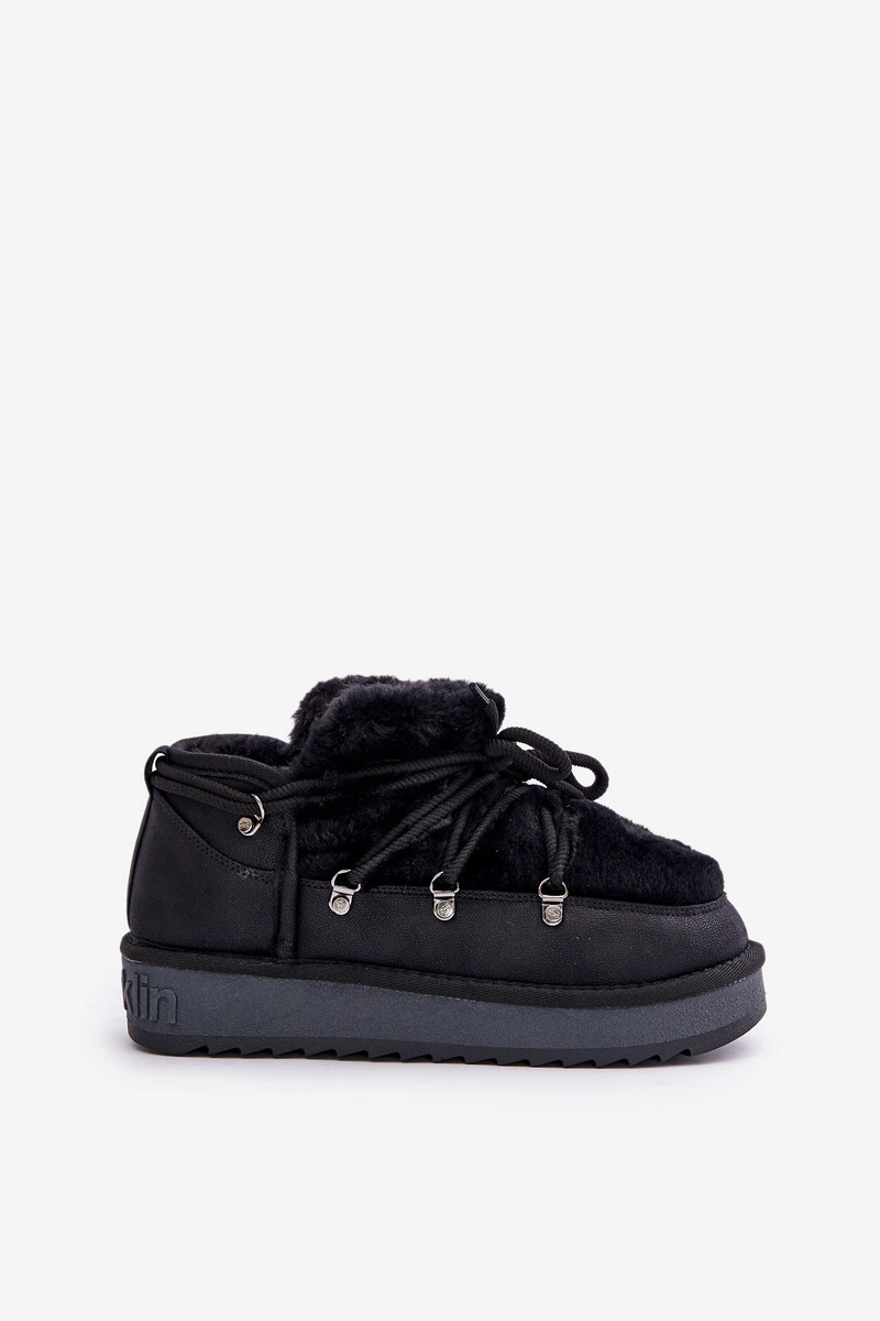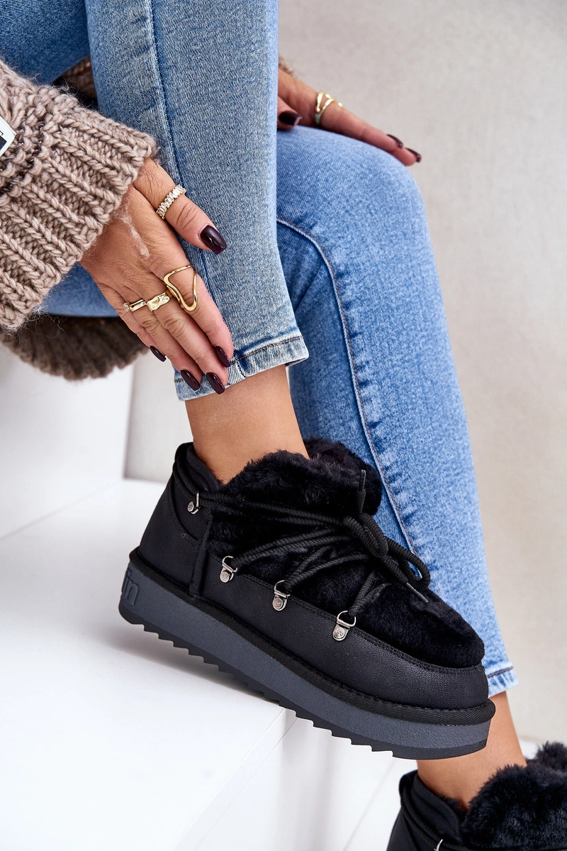 Niskie Śniegowce Na Platformie Z Futerkiem D.Franklin DFSH370011 Czarne
