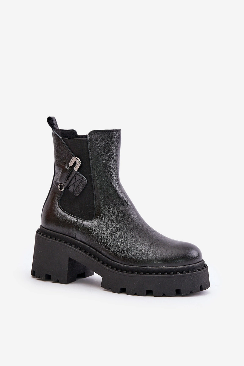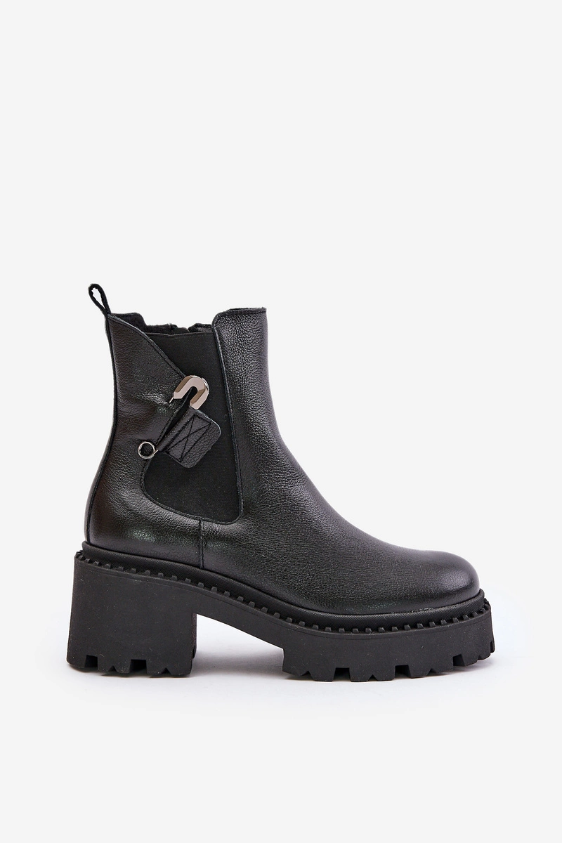 Zazoo 60490 Skórzane Ocieplane Botki Z Ozdobą Czarne