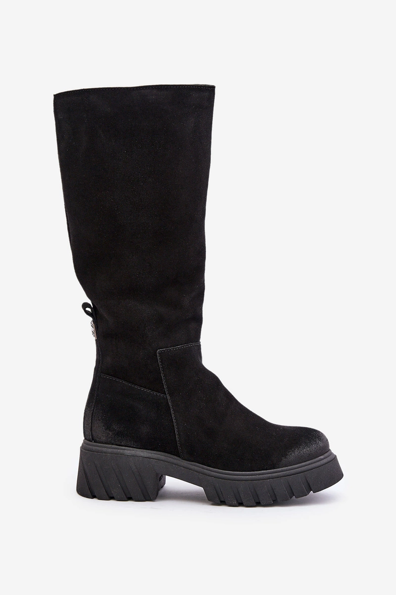Stylowe damskie kozaki są wykonane z najwyższej jakości naturalnej skóry zamszowej. Ten model charakteryzuje się bocznym suwakiem na cholewce. Kozaki mają noski zaokrąglone i są osadzone na platformie i płaskim obcasie. Wnętrze jest ocieplane filcem, co zapewnia dodatkowy komfort termiczny. Te kozaki to niezbędny element każdej garderoby! Przy wyborze rozmiaru prosimy kierować tabelą rozmiarów.