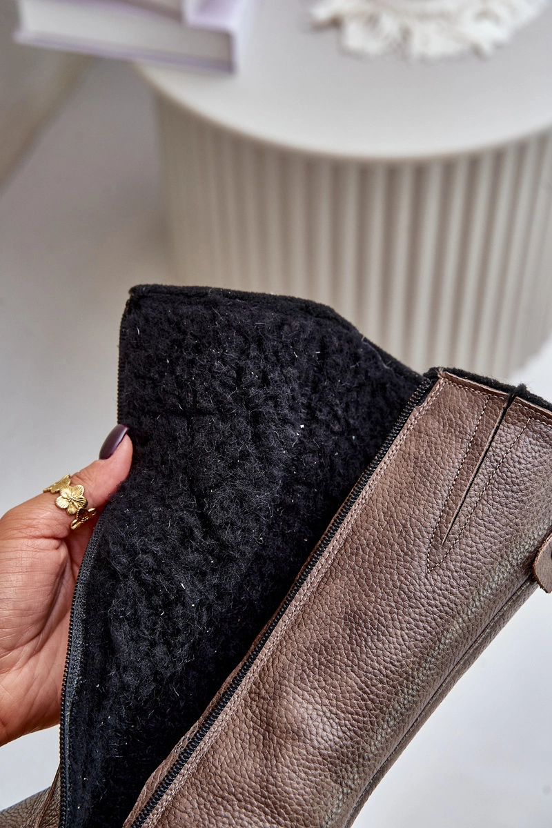 Zazoo 70121 Skórzane Damskie Kozaki Z Wełną Brązowe