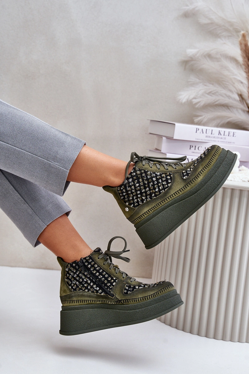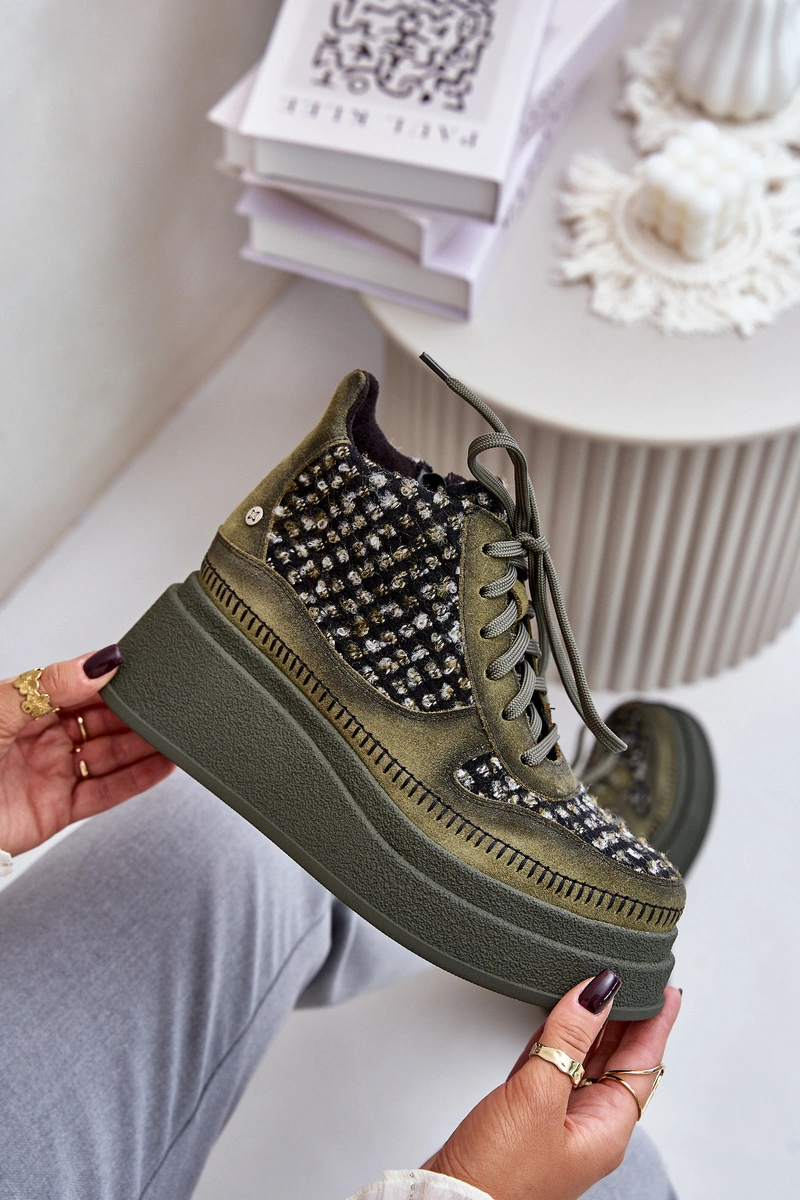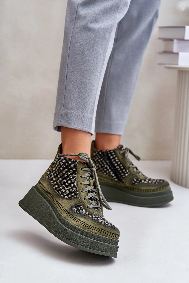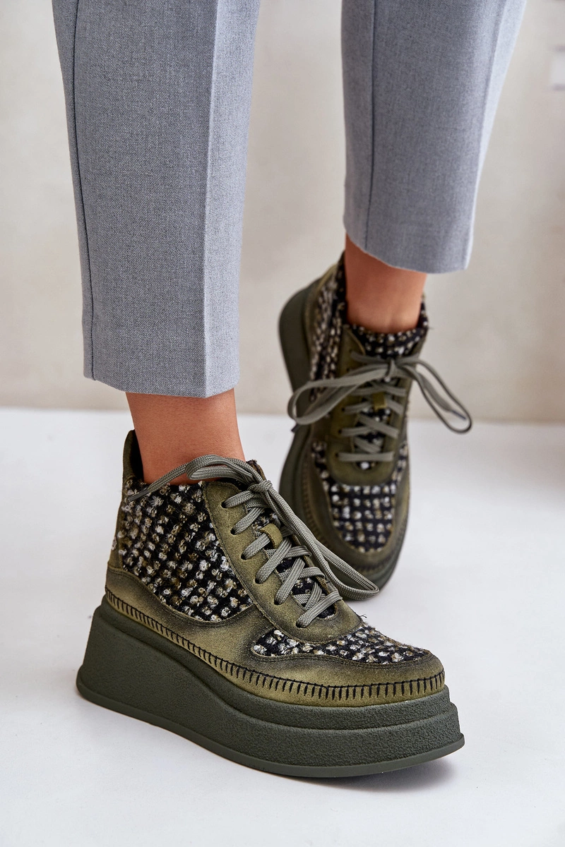 Skórzane Botki Na Platformie I Koturnie Maciejka 06759-09 Zielone