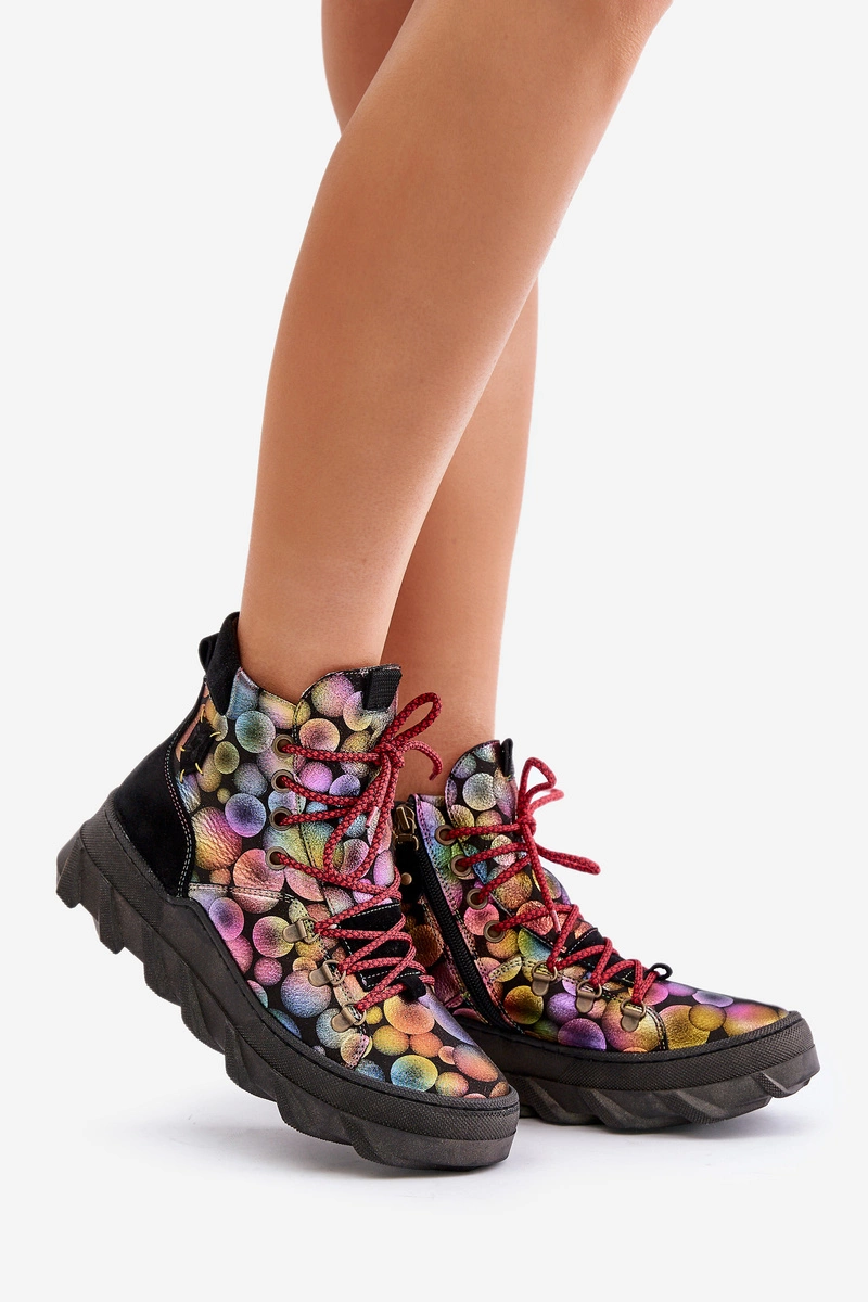 Skórzane Damskie Ocieplane Botki Maciejka 06146-39 Multikolor