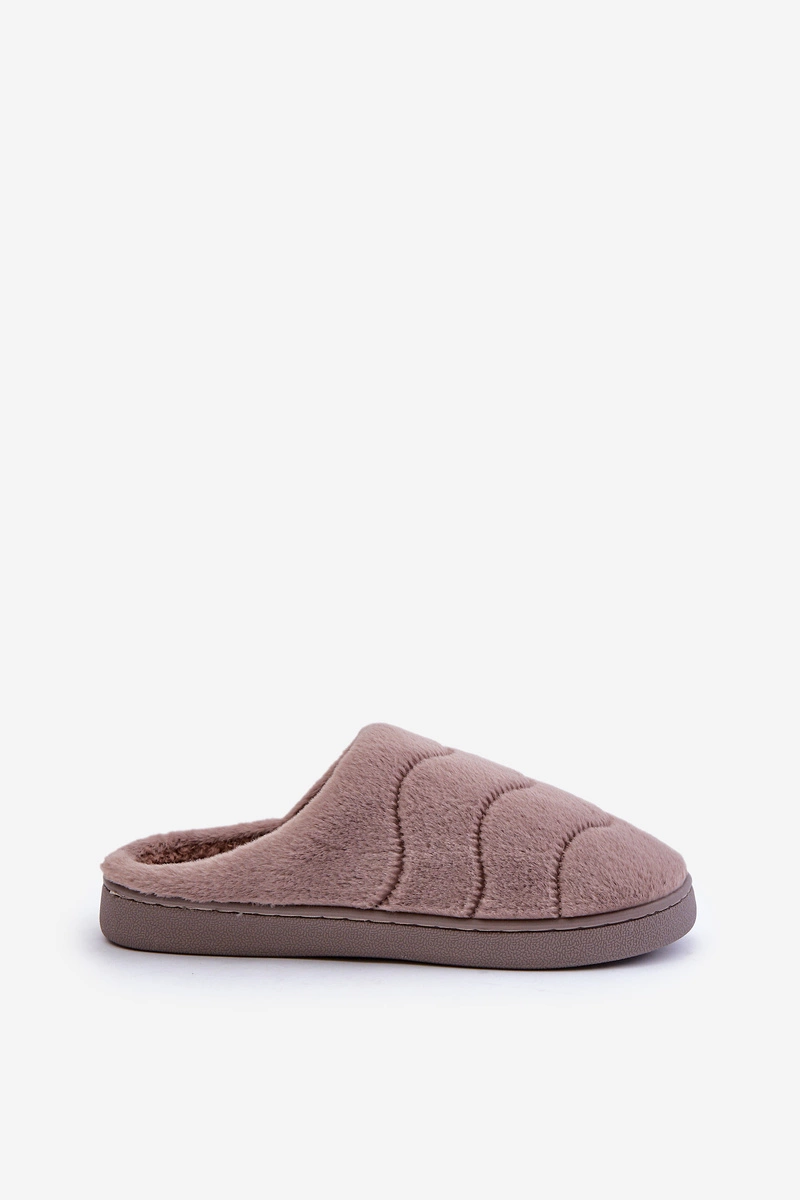 Futrzane Ciepłe Kapcie Damskie Brązowe Vamirae