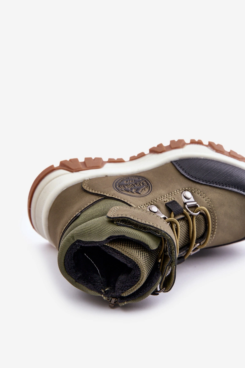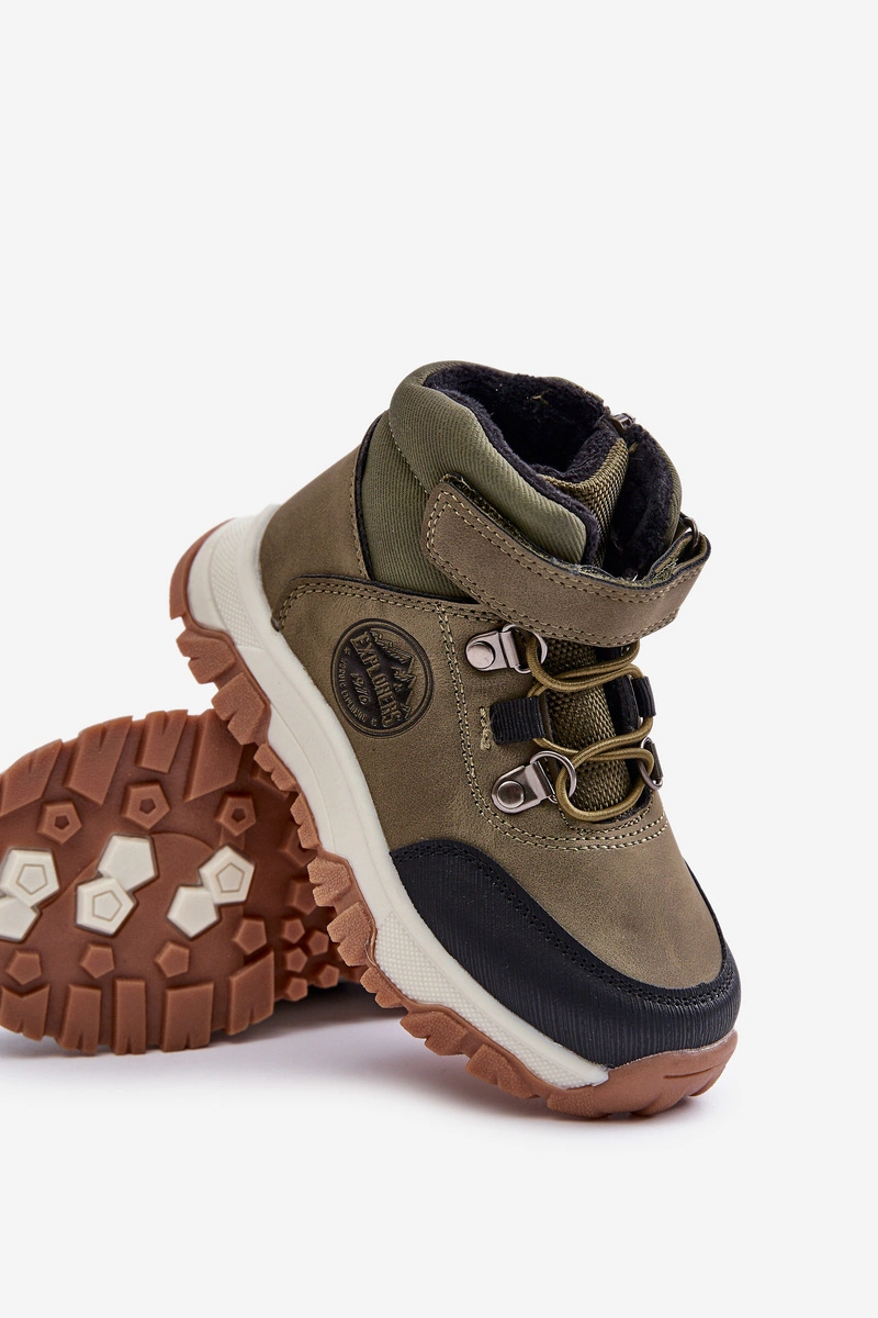 Ocieplane Dziecięce Buty Zimowe Trekkingowe Na Zamek Ciemnozielone Temisha
