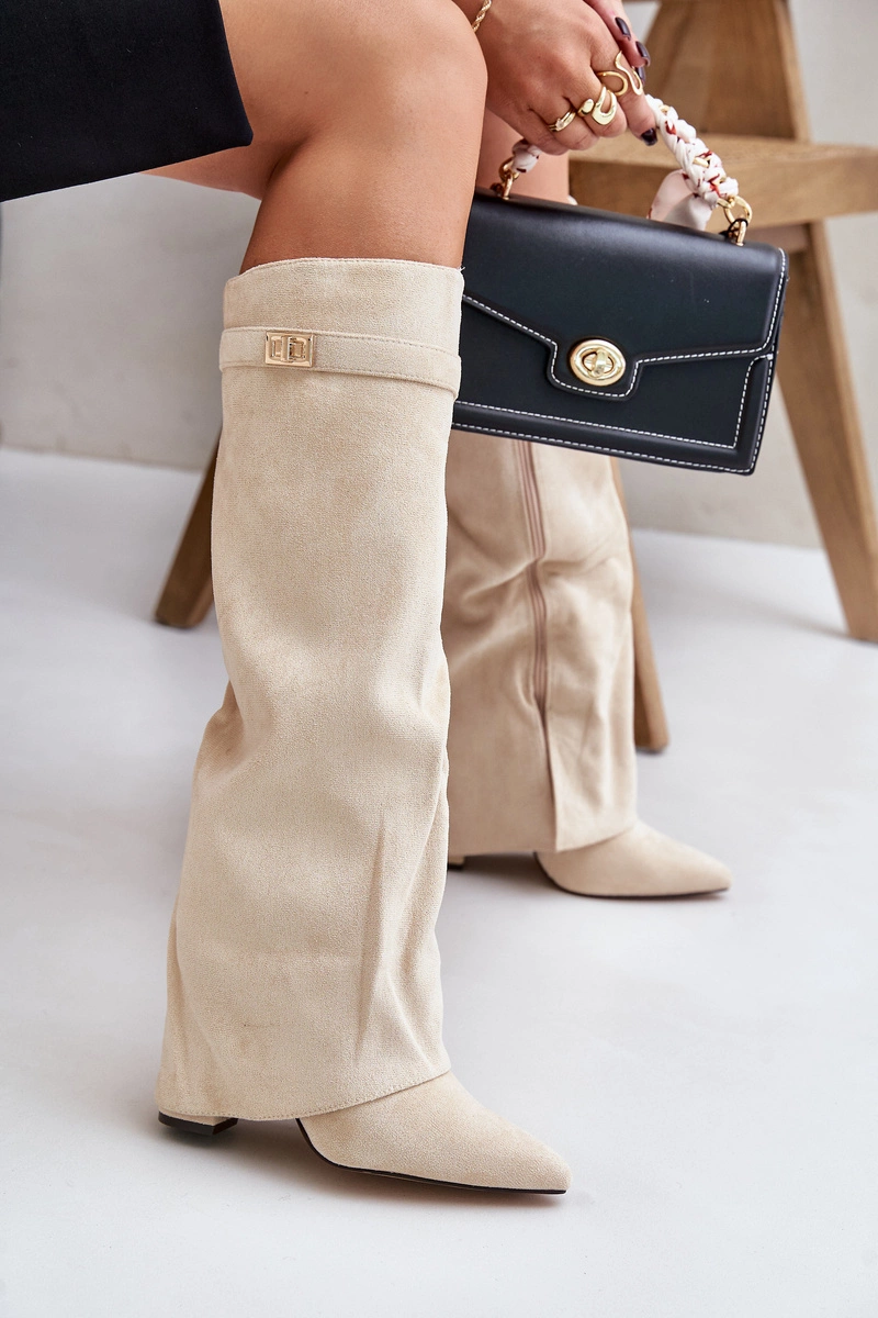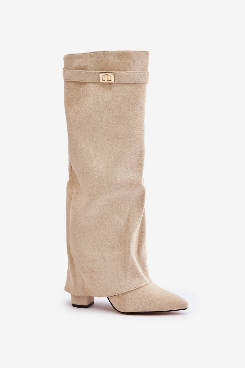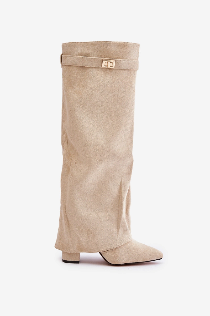 Kozaki Na Słupku Z Wywiniętą Cholewką Ocieplane Jasnobeżowe Urelli