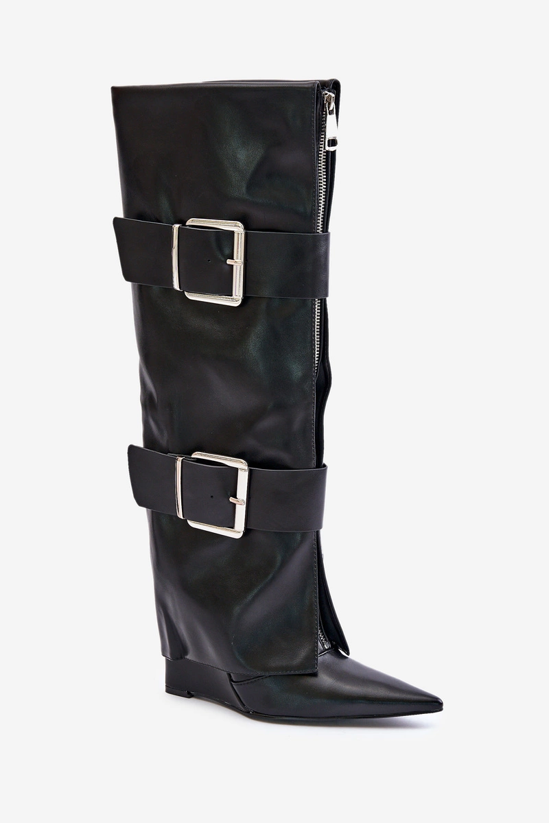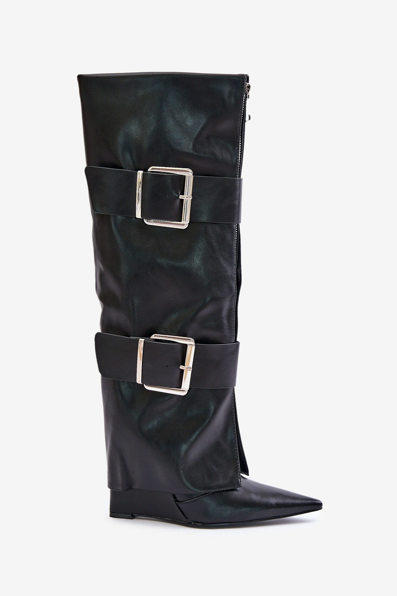 Kozaki Do Kolana Na Koturnie Z Wywiniętą Cholewką I Klamrami Tamirla