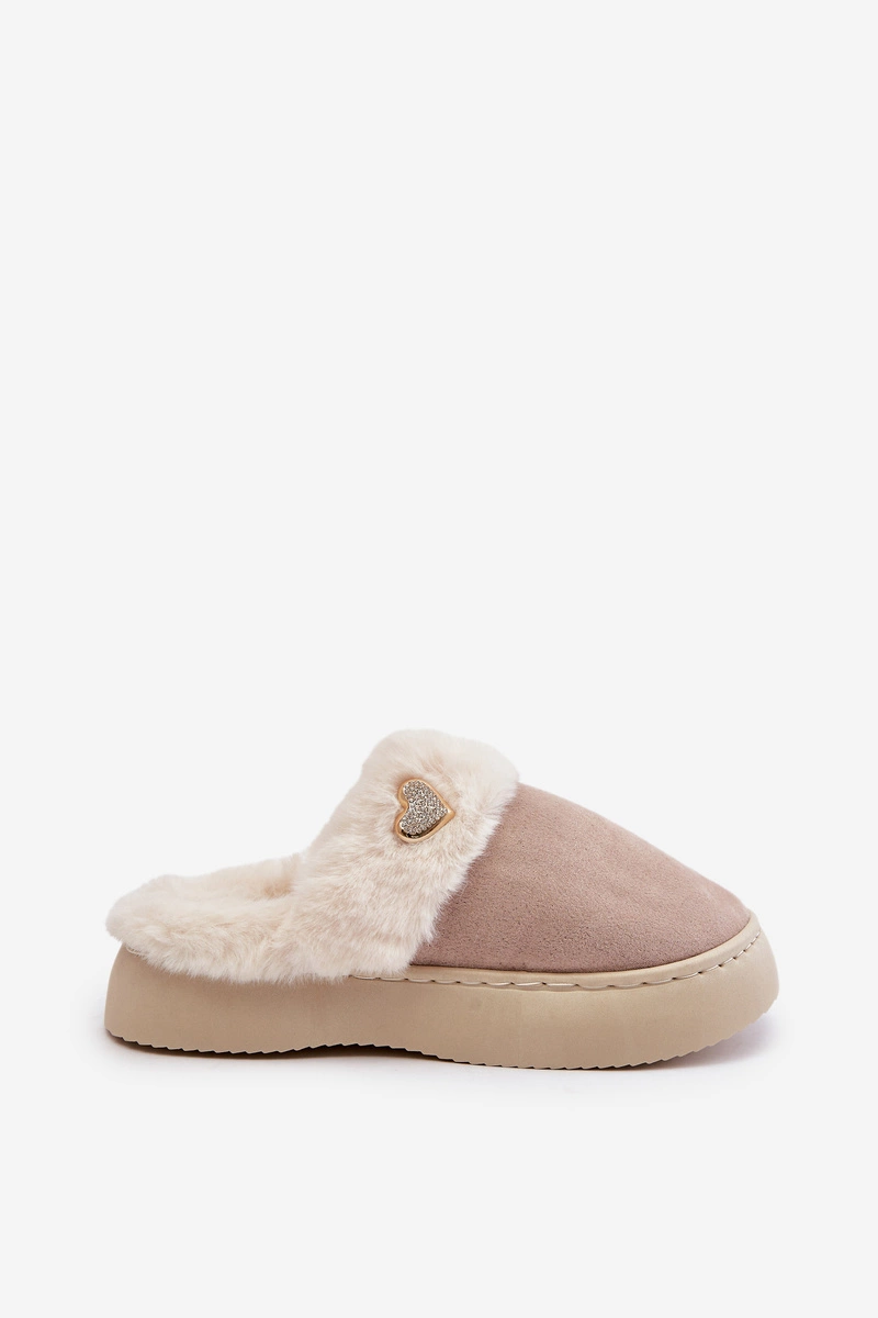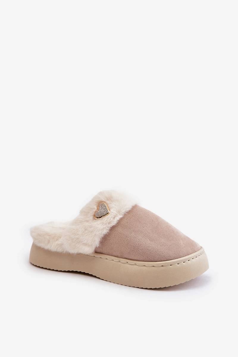 Kapcie Damskie Z Futerkiem I Ozdobnym Sercem Beżowe Otielo