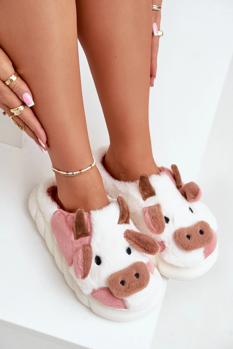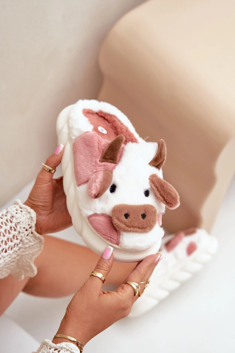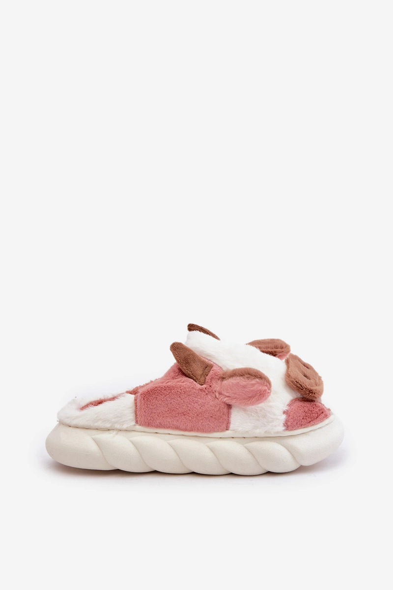Futrzane Kapcie Krowy Damskie Różowe Remiola
