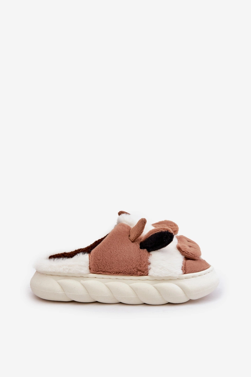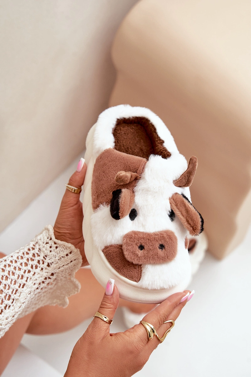 Futrzane Kapcie Krowy Damskie Brązowe Remiola