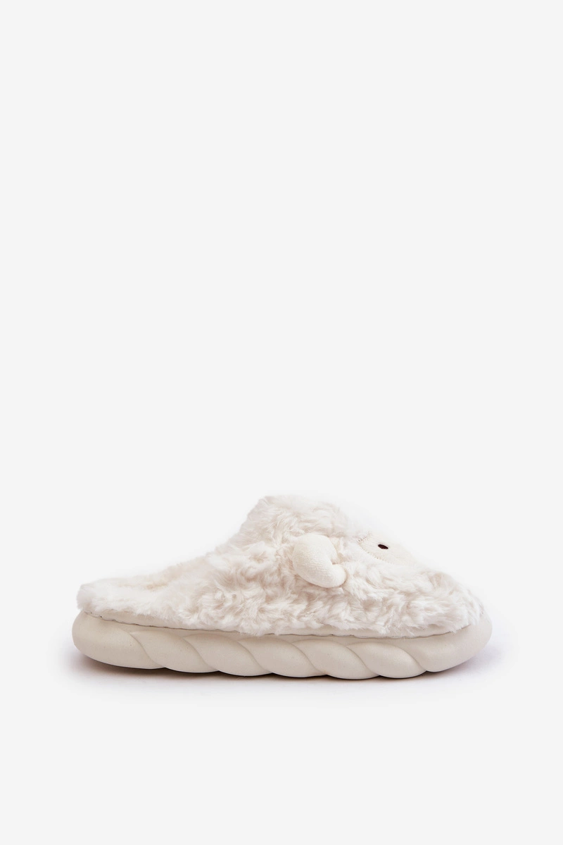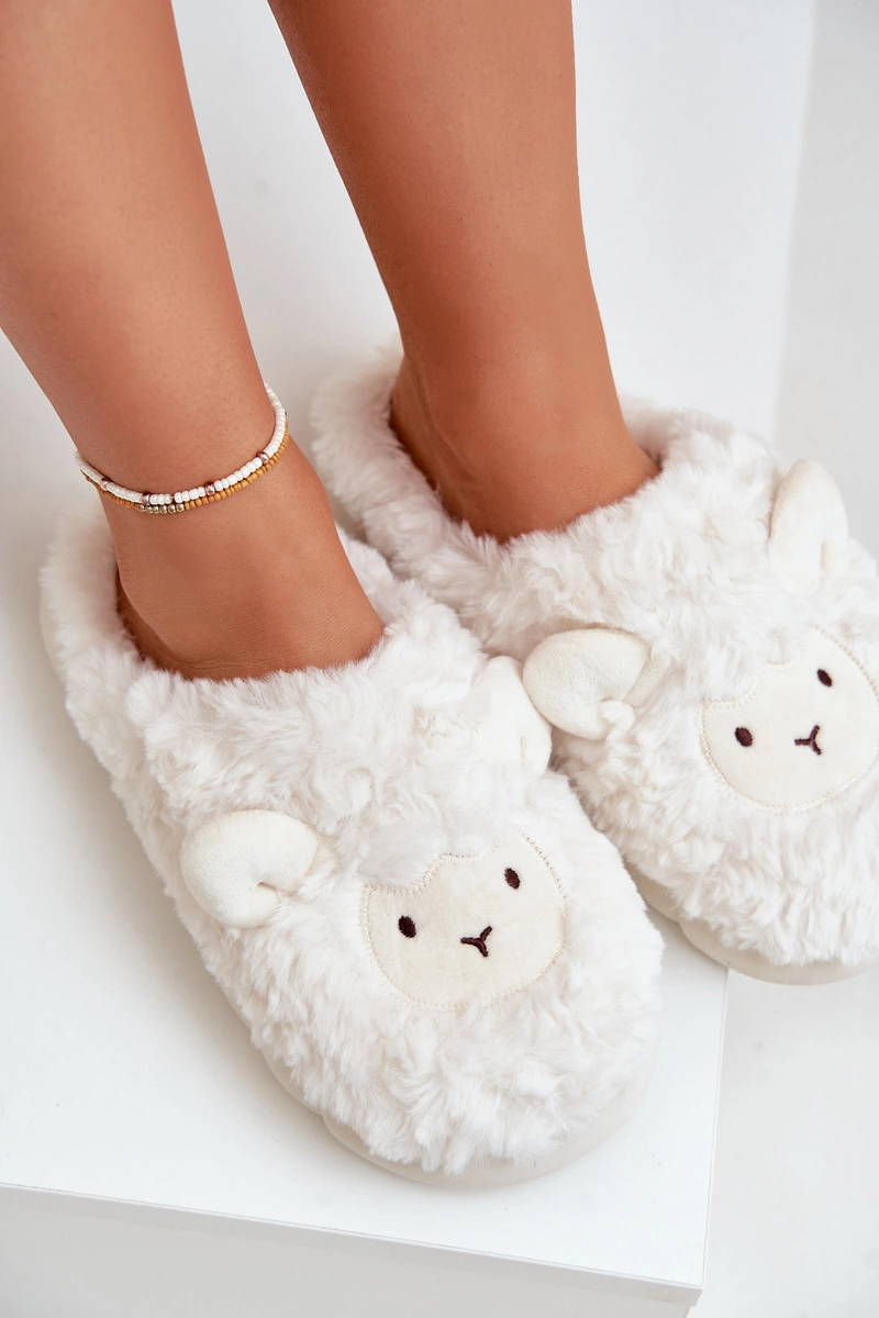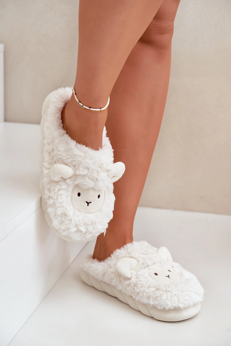 Futrzane Kapcie Damskie Z Motywem Owcy Białe Phaeia