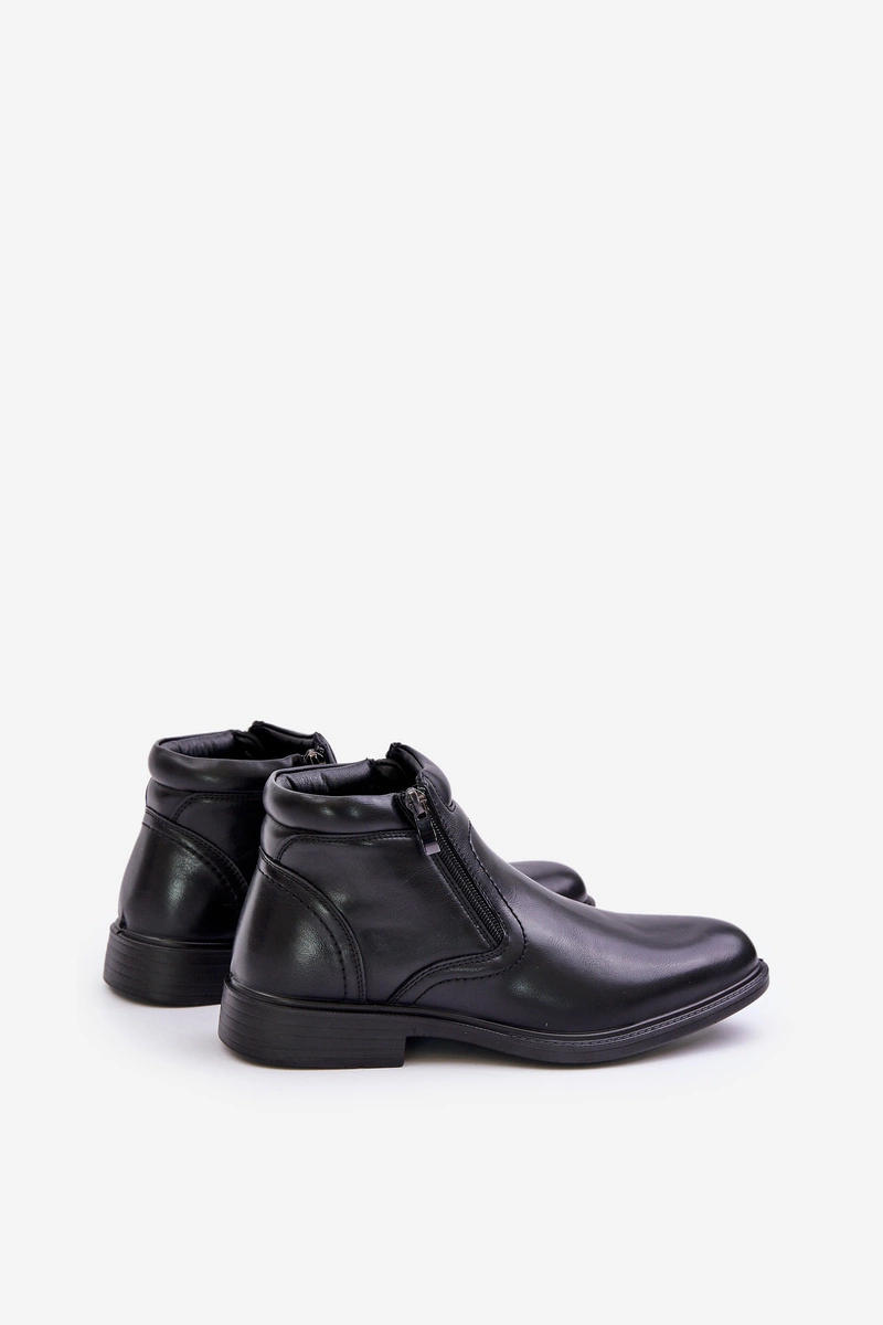 Botki Męskie Z Ociepleniem Eko Skórzane Czarne Lilari