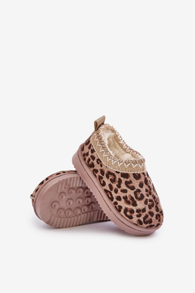 Śniegowce Botki Dziecięce W Panterkę Na Platformie Ocieplane Futerkiem Brązowe Vilabria