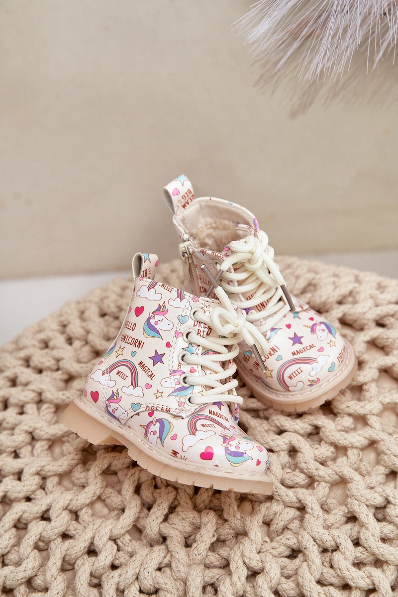 Dziecięce Botki Ocieplane Z Suwakiem Jednorożce Beżowe Tiptop