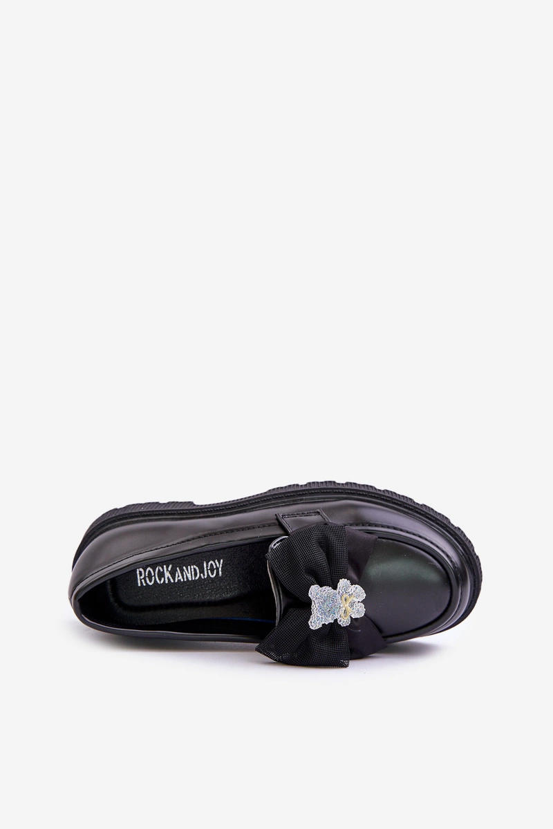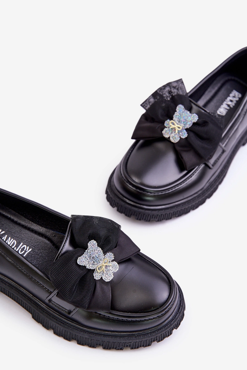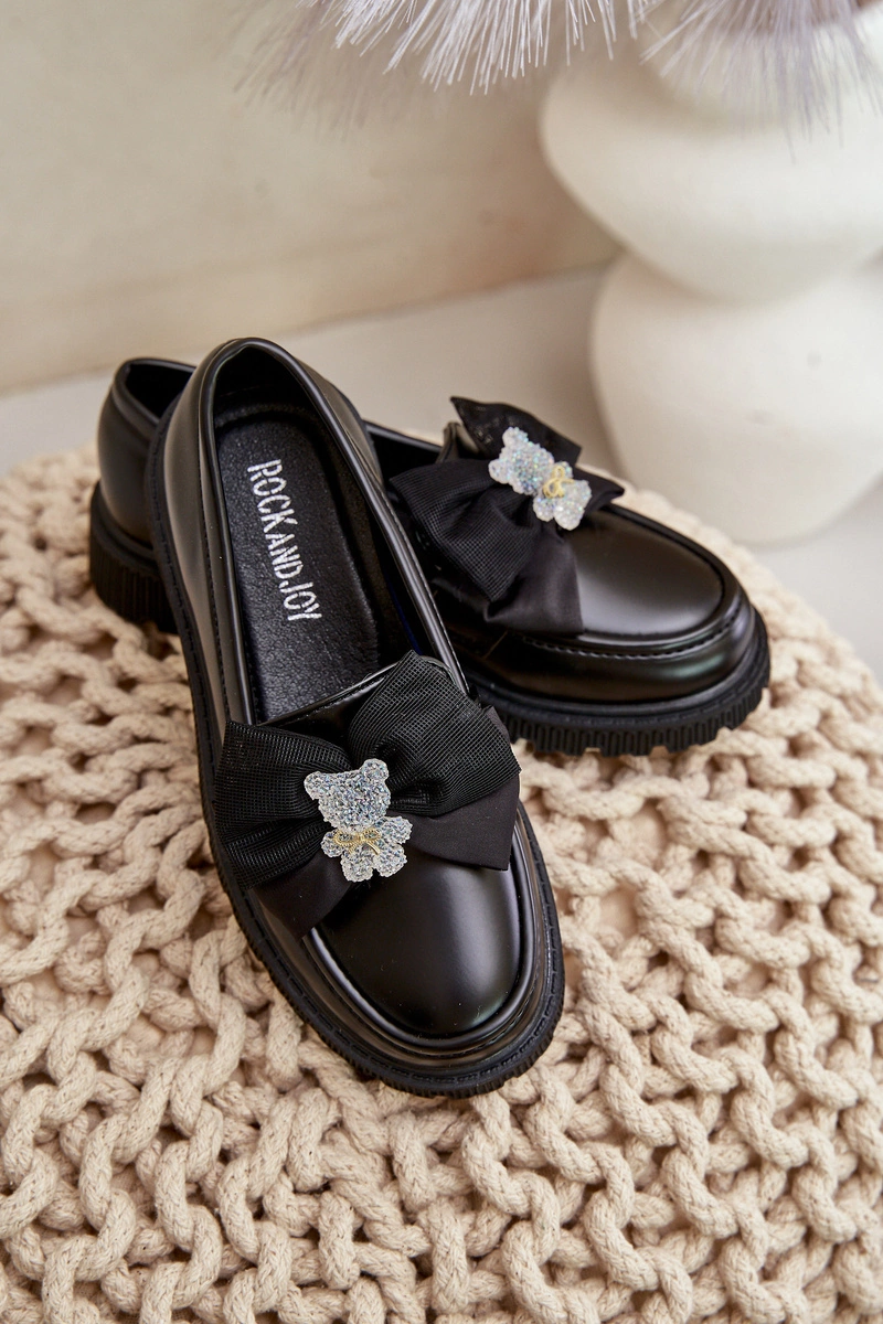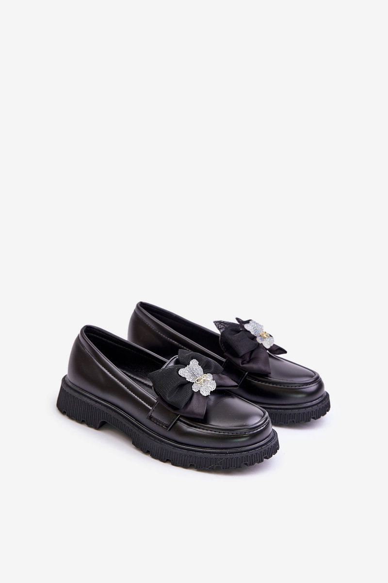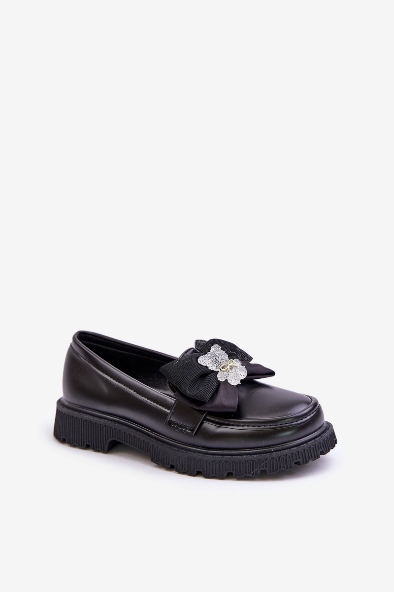 Mokasyny Dziewczęce Z Kokardą Eko Skórzane Czarne Avallesa