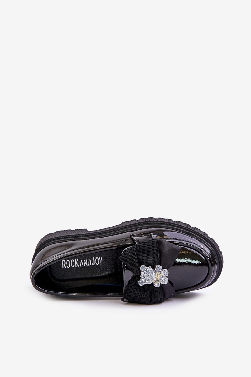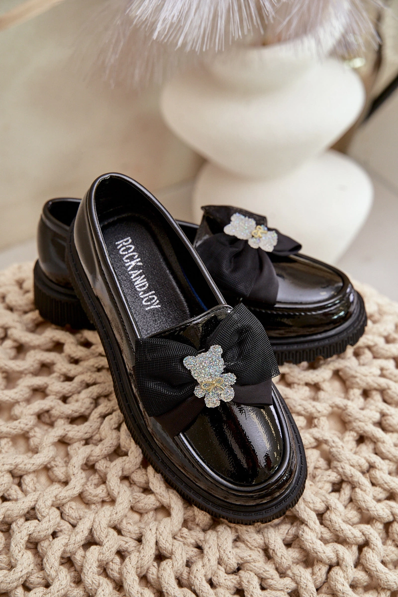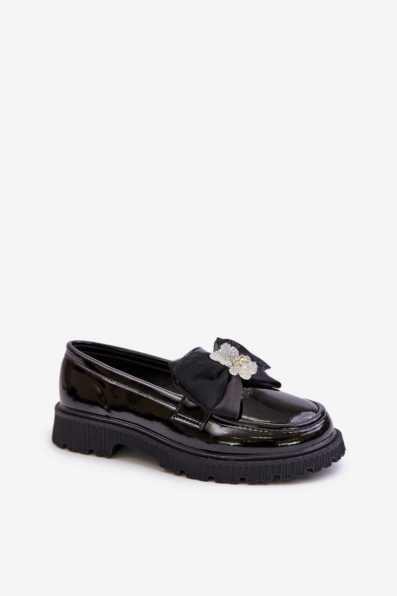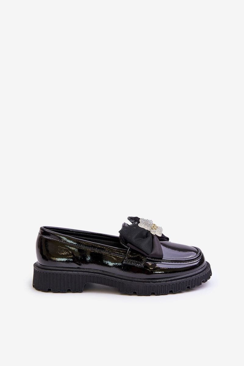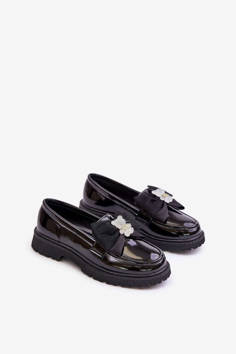 Lakierowane Mokasyny Dziewczęce Z Kokardą Eko Skórzane Czarne Avallesa