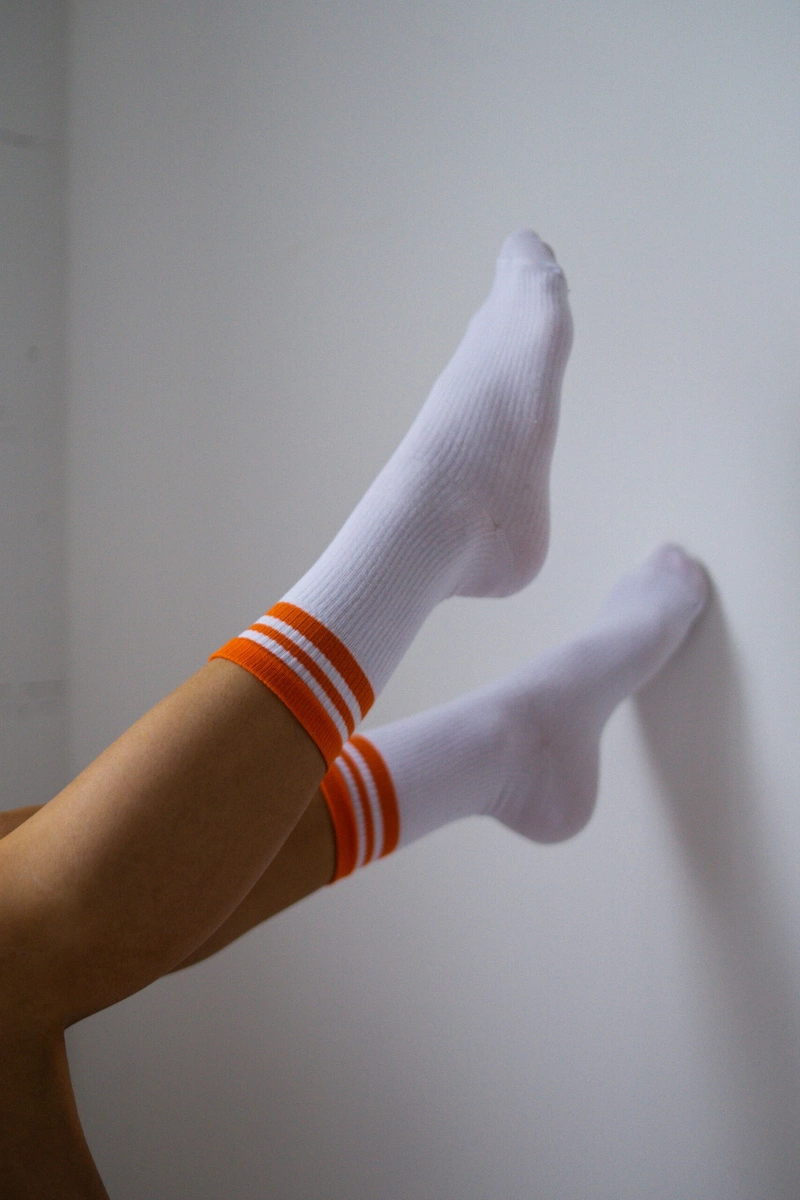 Damskie Wysokie Skarpetki W Prążek Z Paskami Biało-Pomarańczowe
