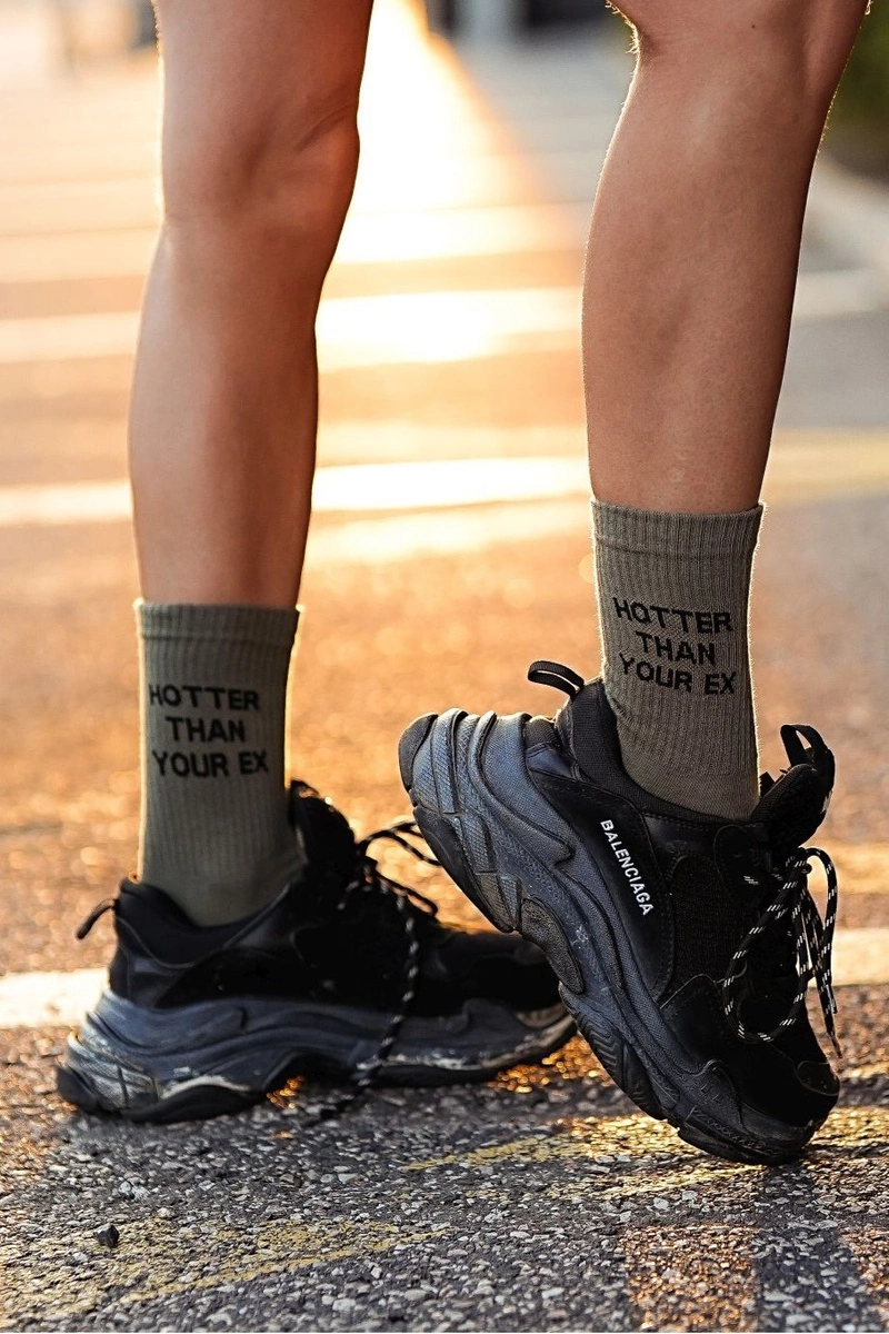Skarpetki Damskie Z Napisem Hotter Than Your Ex Oliwkowe