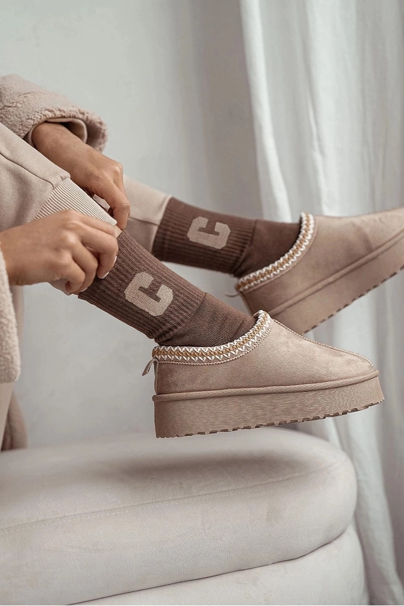 Skarpetki Damskie Frotte Z Literą C Brązowe