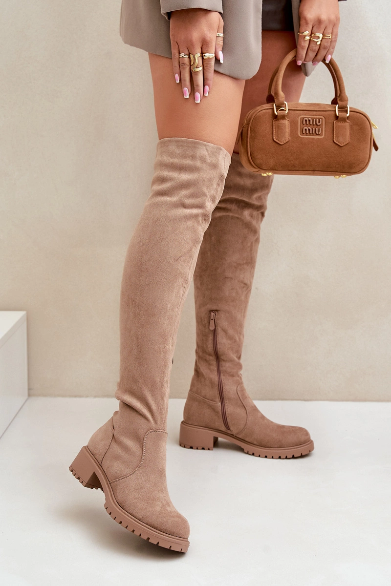 Kozaki Za Kolano Na Płaskim Obcasie Beżowe Filora