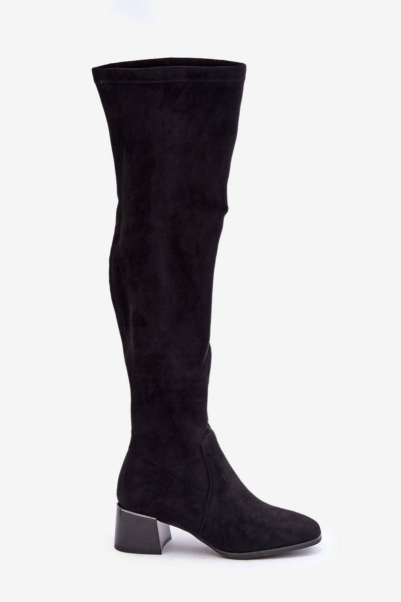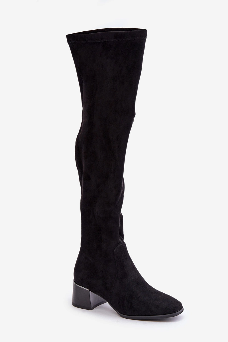 Kozaki Na Obcasie Klocku Za Kolano Z Eko Zamszu Czarne Galadi
