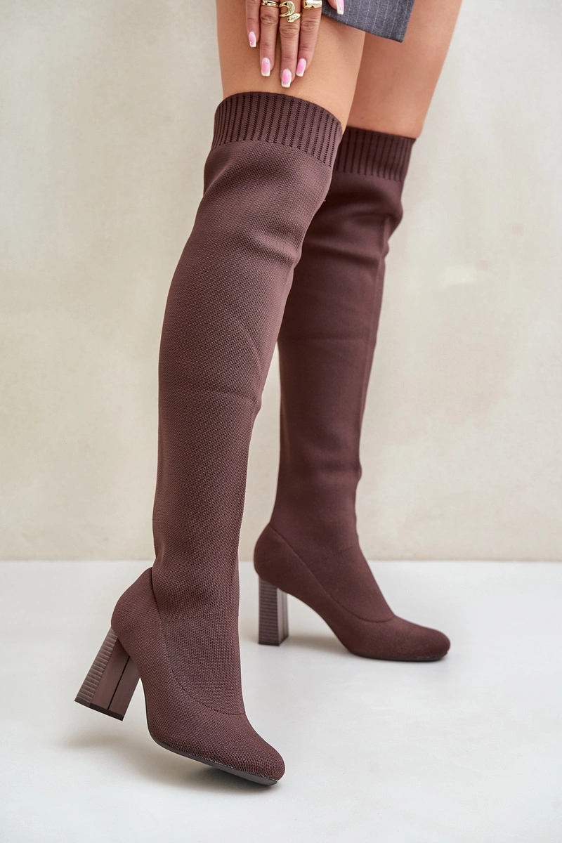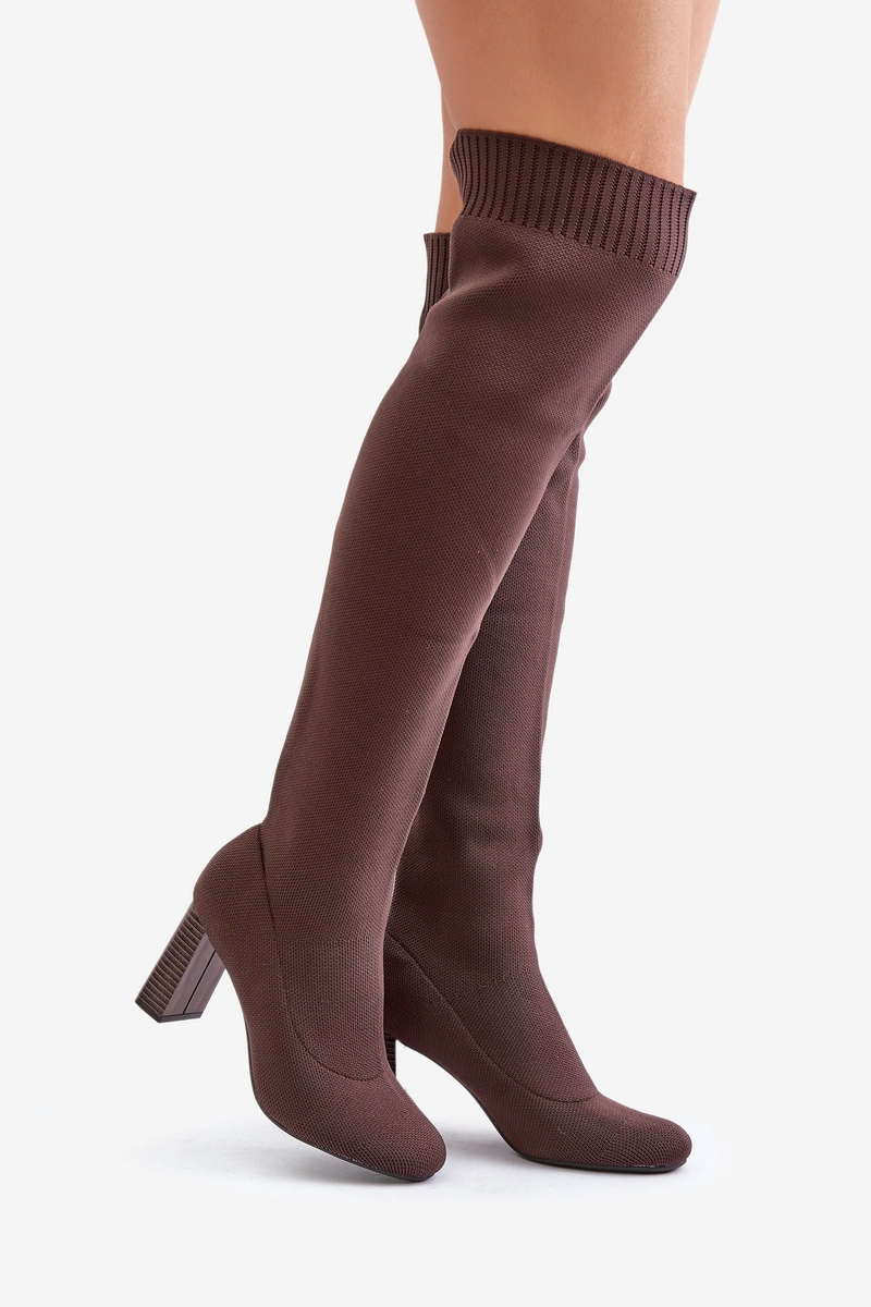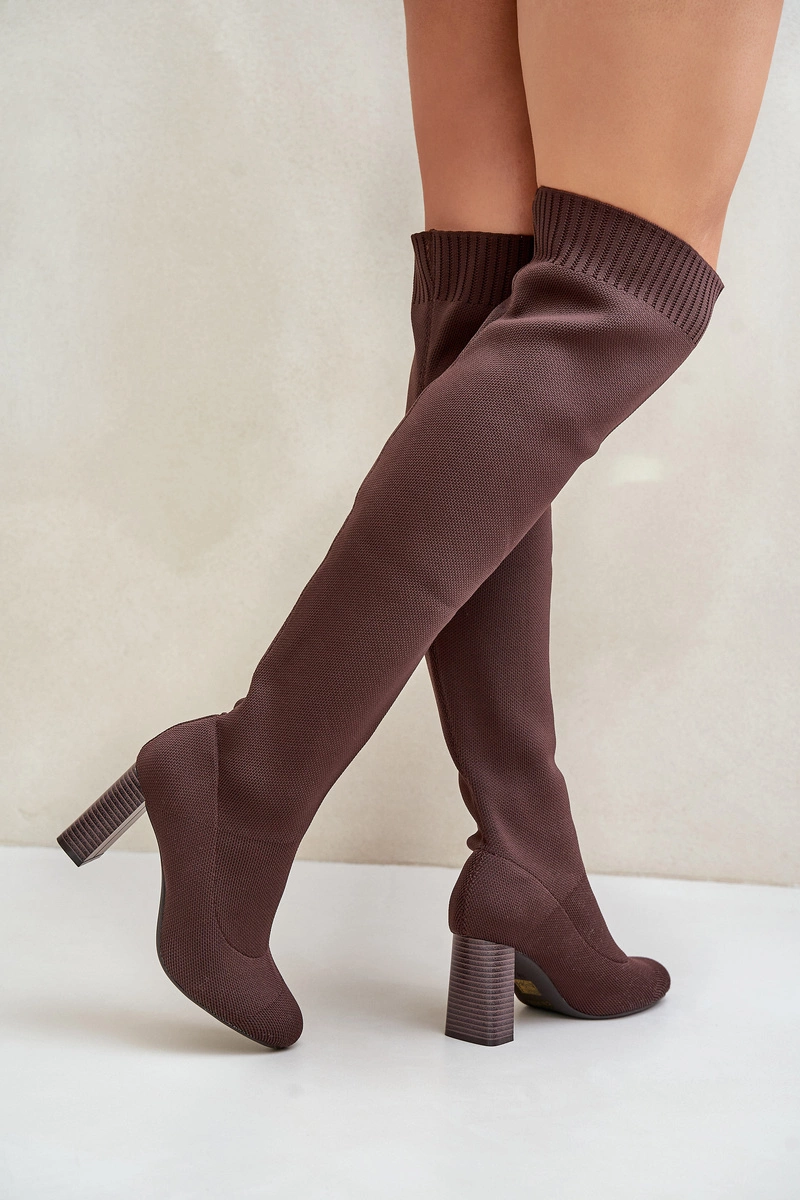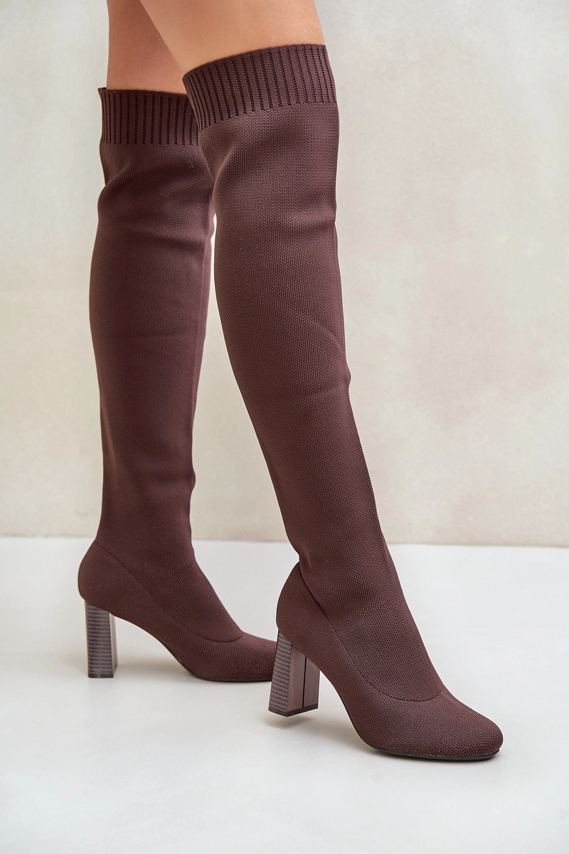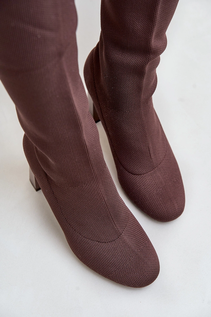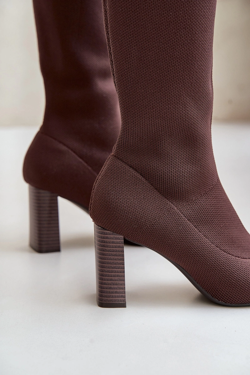 Kozaki Ze Skarpetkową Cholewką Za Kolano Na Słupku Brązowe Esanira