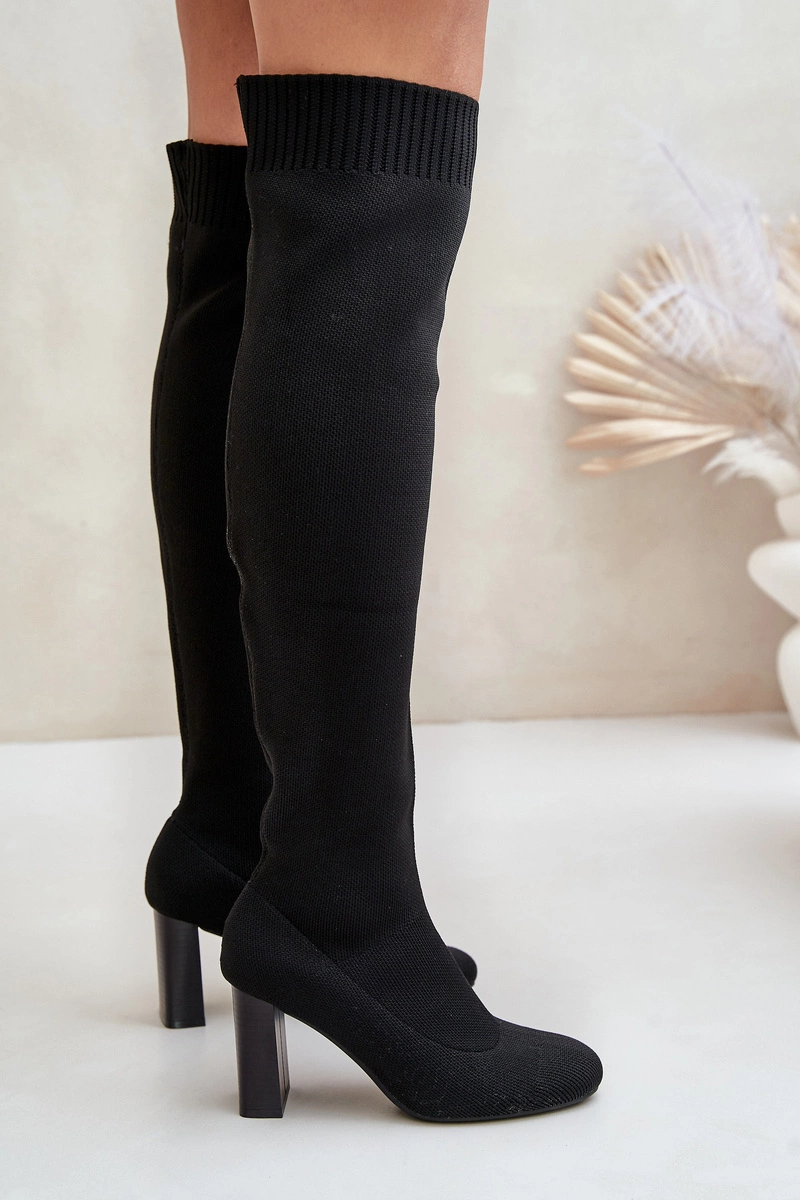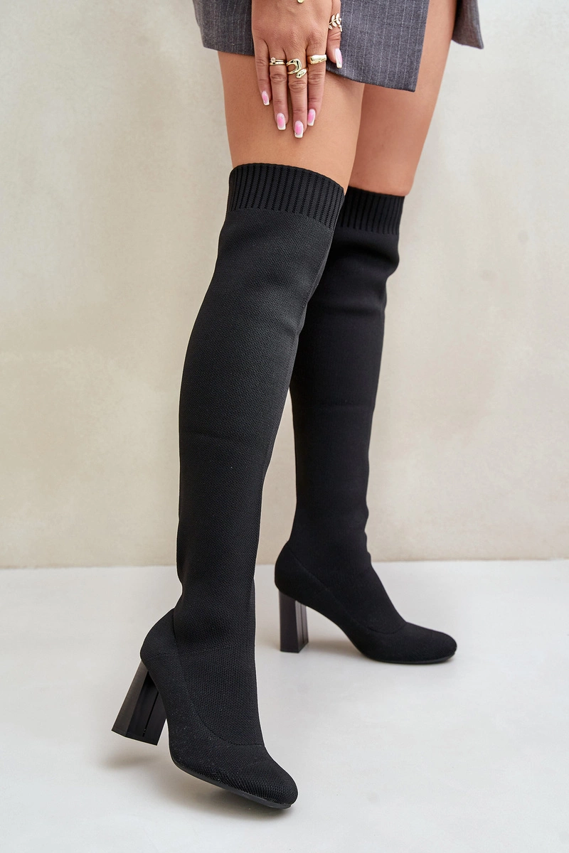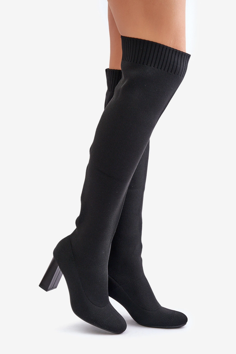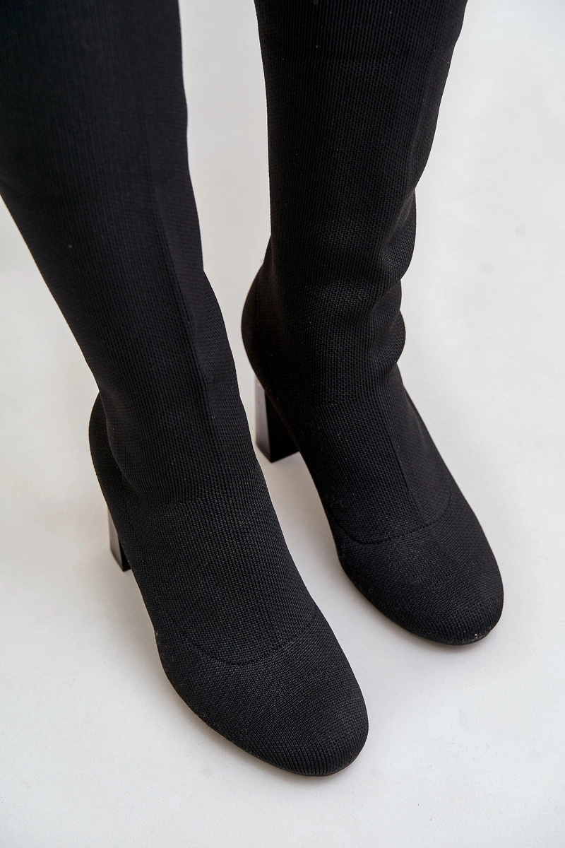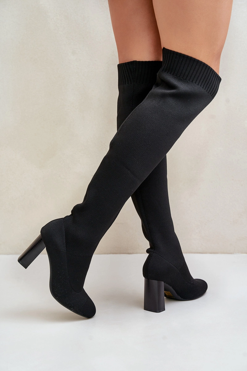 Kozaki Ze Skarpetkową Cholewką Za Kolano Na Słupku Czarne Esanira