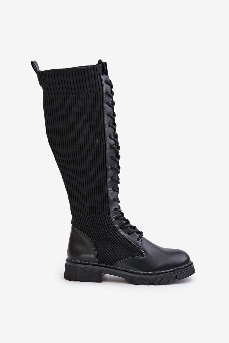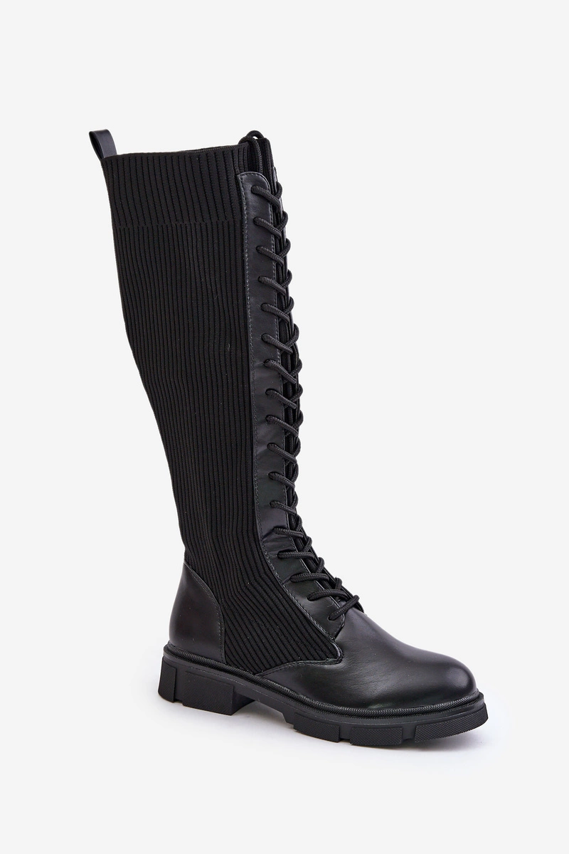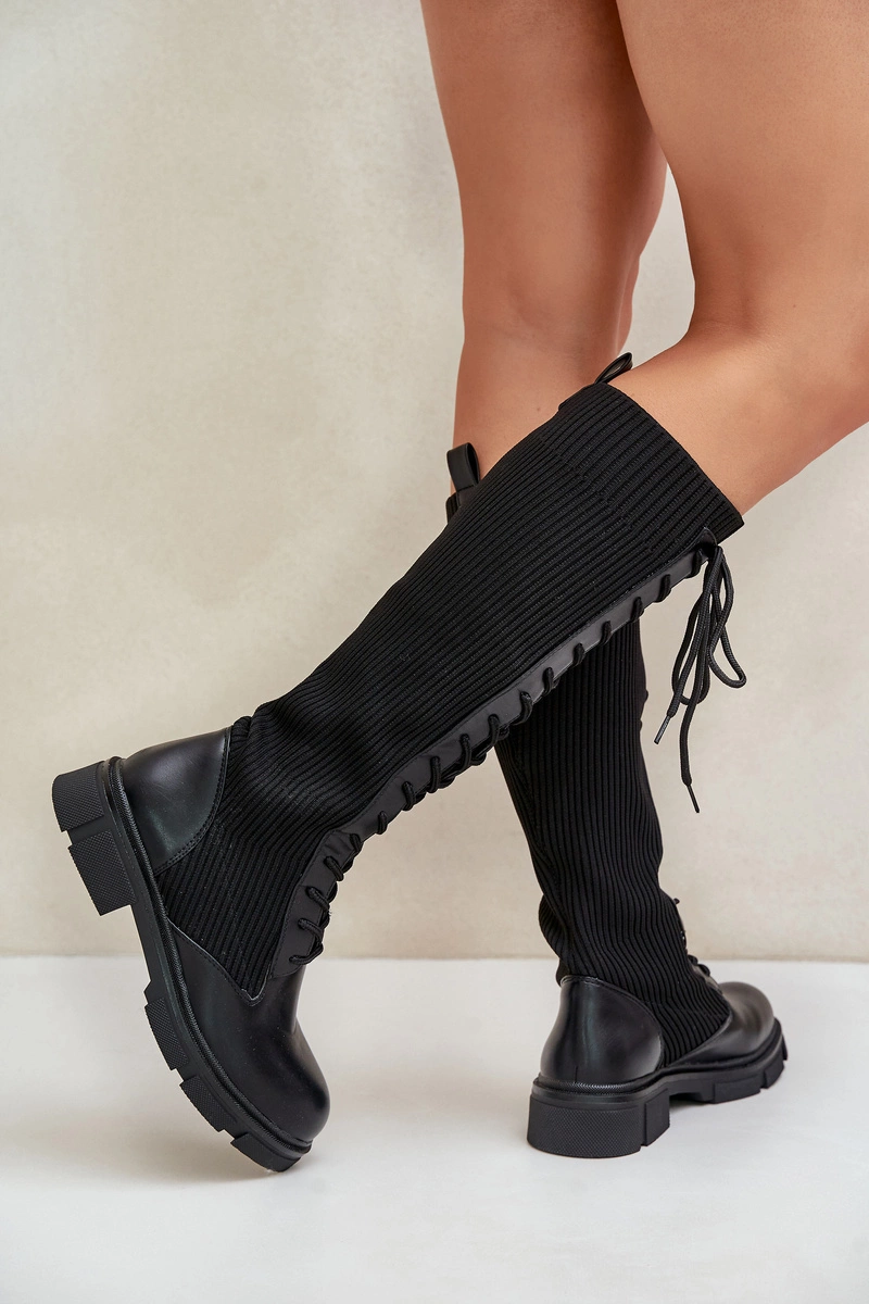 Sznurowane Kozaki Z Elastyczną Cholewką Czarne Vamilena