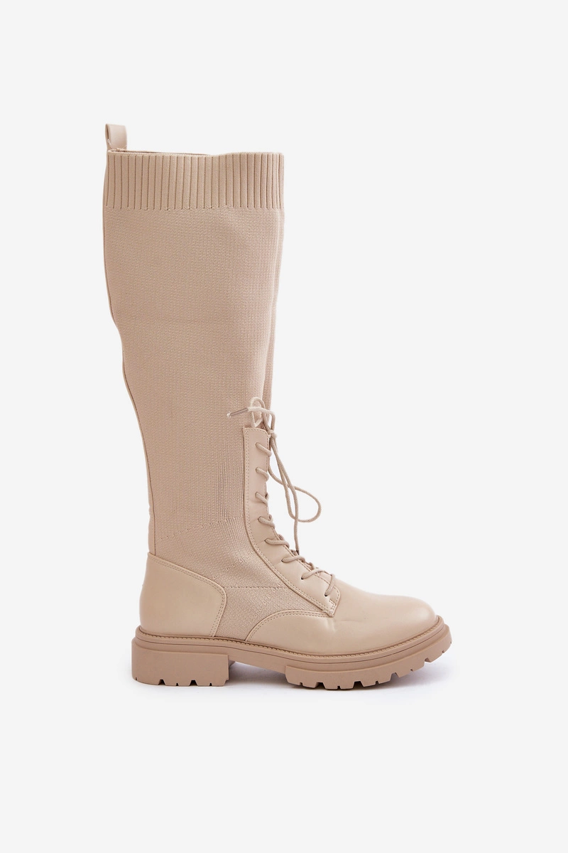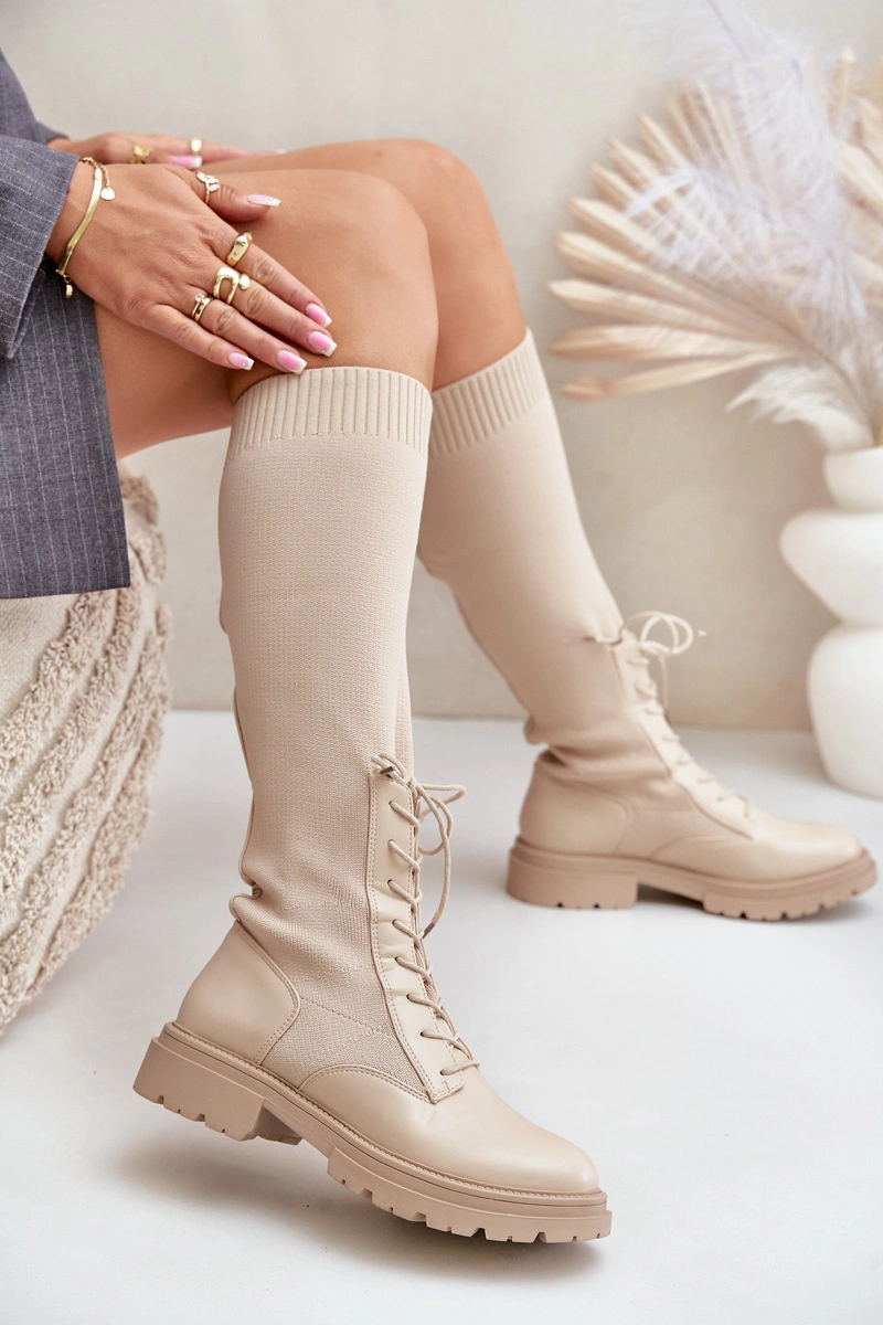 Wsuwane Kozaki Ze Skarpetkową Cholewką Beżowe Iranel