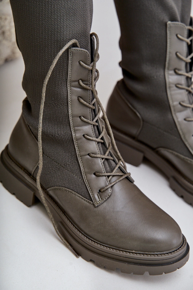 Wsuwane Kozaki Ze Skarpetkową Cholewką Ciemnozielone Iranel
