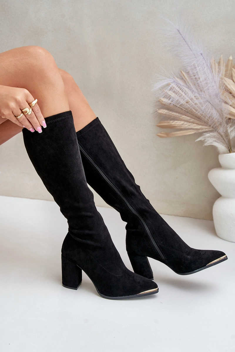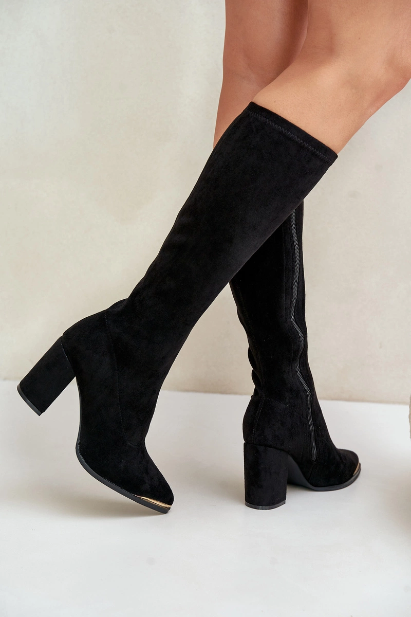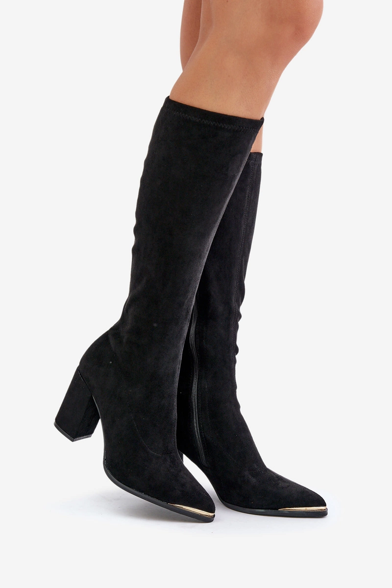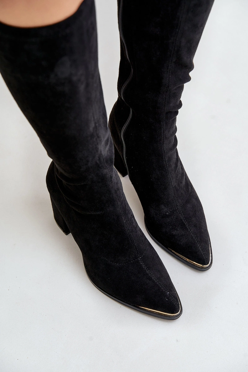 Kozaki wykonane z eko zamszu to stylowy wybór na chłodniejsze dni. Model posiada szpiczaste noski, które dodają elegancji i wydłużają optycznie nogi. Cholewka z charakterystycznymi przeszyciami urozmaica klasyczny design butów, nadając im nowoczesny akcent. Zamek umieszczony z boku ułatwia zakładanie i zdejmowanie. Wnętrze ocieplane jest kocem obuwniczym wyłącznie na wysokości stopy. Te kozaki świetnie sprawdzą się zarówno w codziennych, jak i bardziej eleganckich stylizacjach. Przy wyborze rozmiaru prosimy sugerować się tabelą rozmiarów.