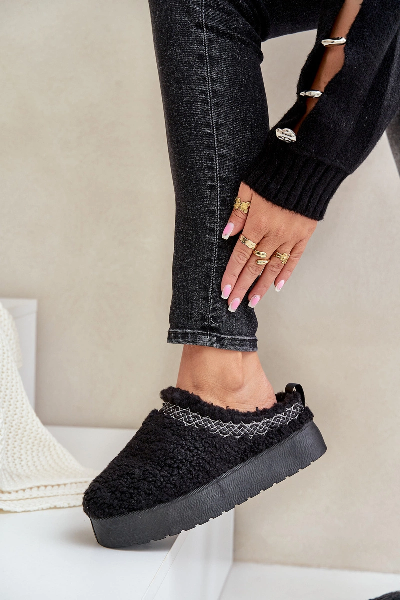 Śniegowce Na Platformie Z Futerkiem Typu Baranek Czarne Mesirra