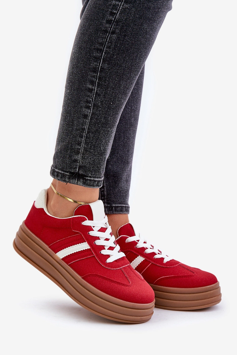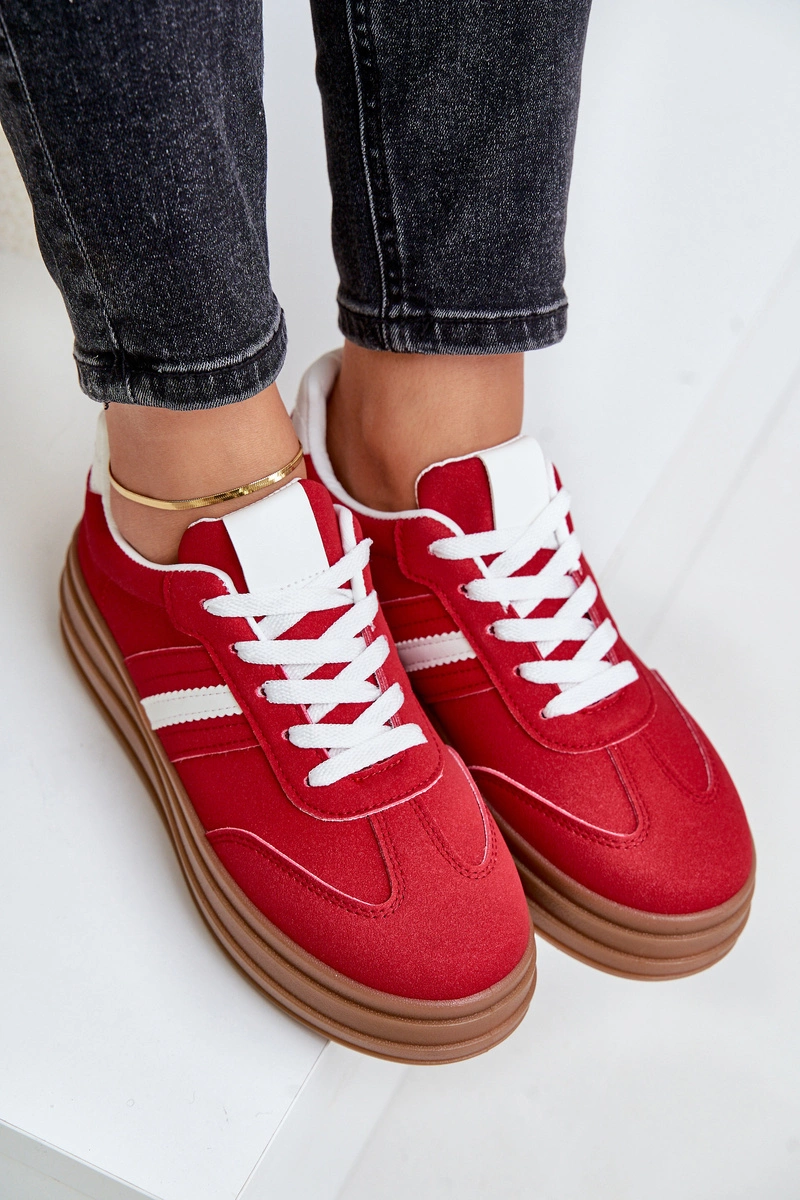Sneakersy Damskie Na Platformie Czerwone Dravinnia