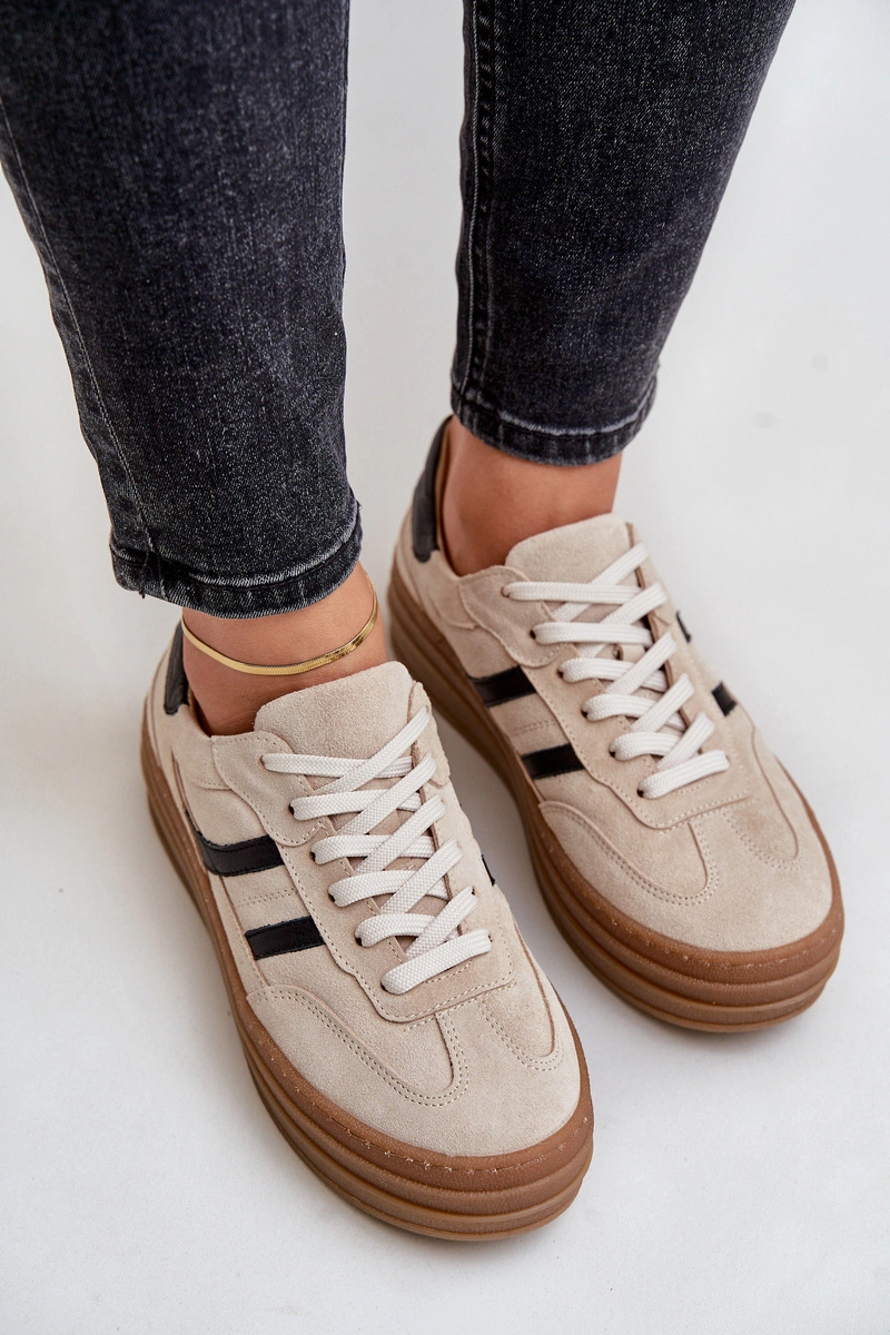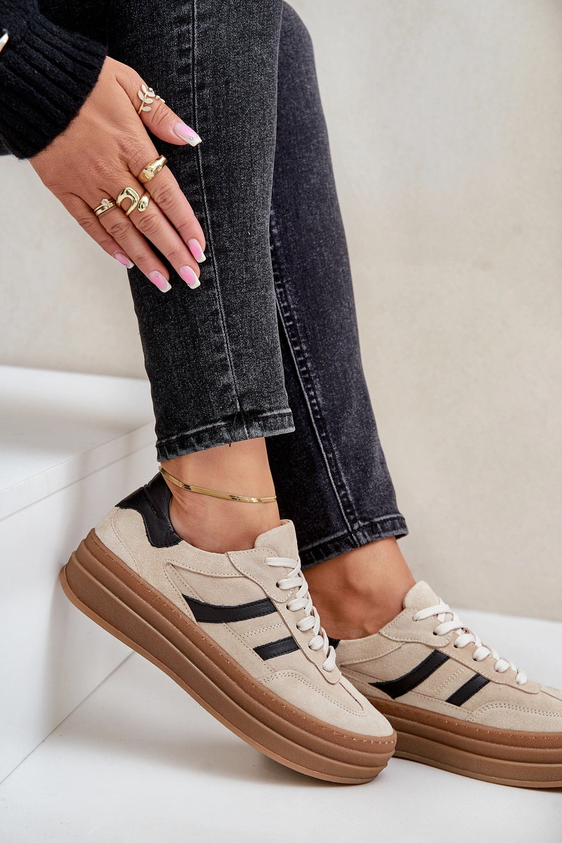 Zazoo N1176 Zamszowe Sneakersy Na Platformie Beżowe