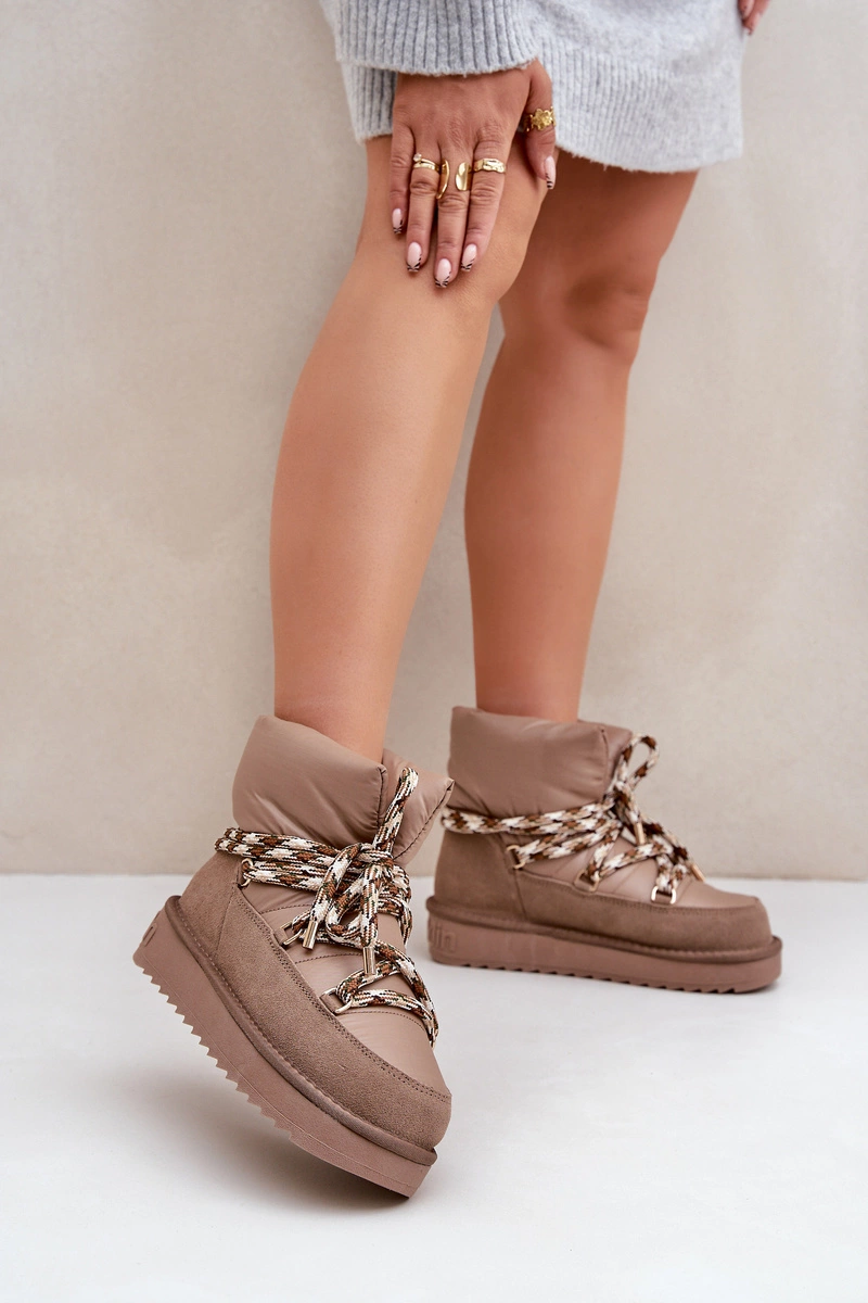 Zamszowe Śniegowce Damskie Z Grubym Sznurowaniem D.Franklin DFSH375003 Taupe