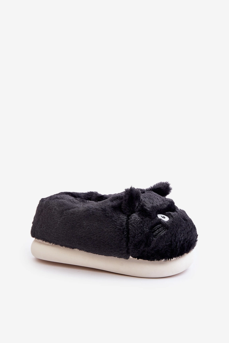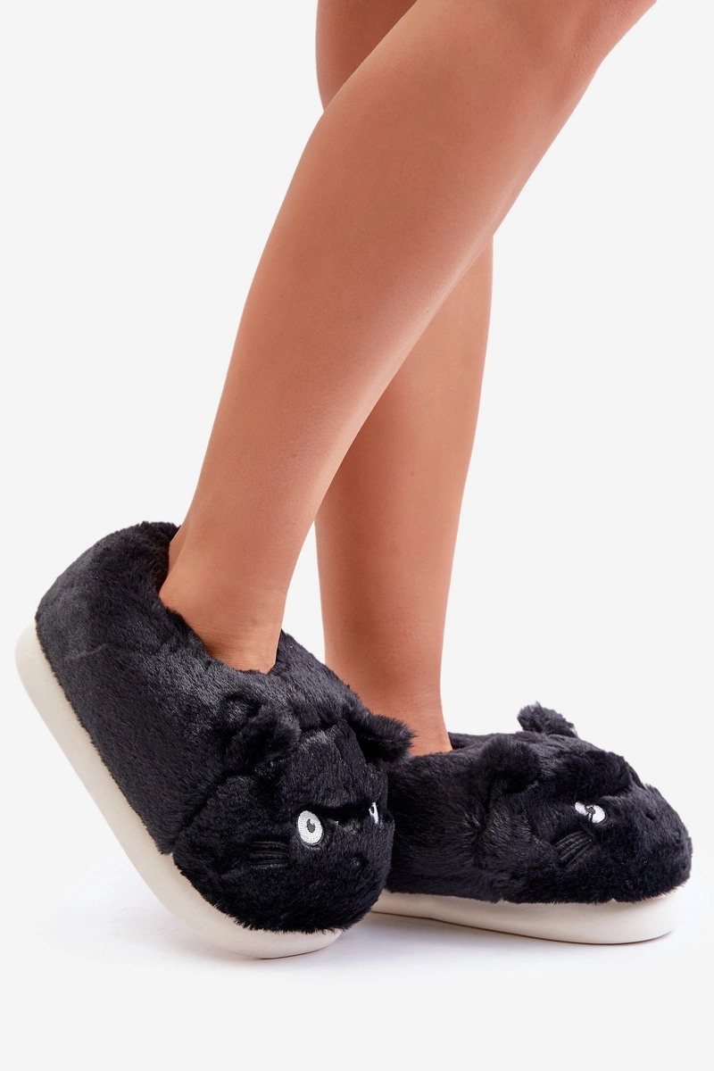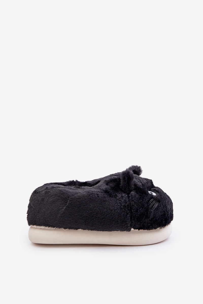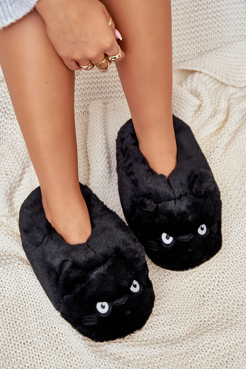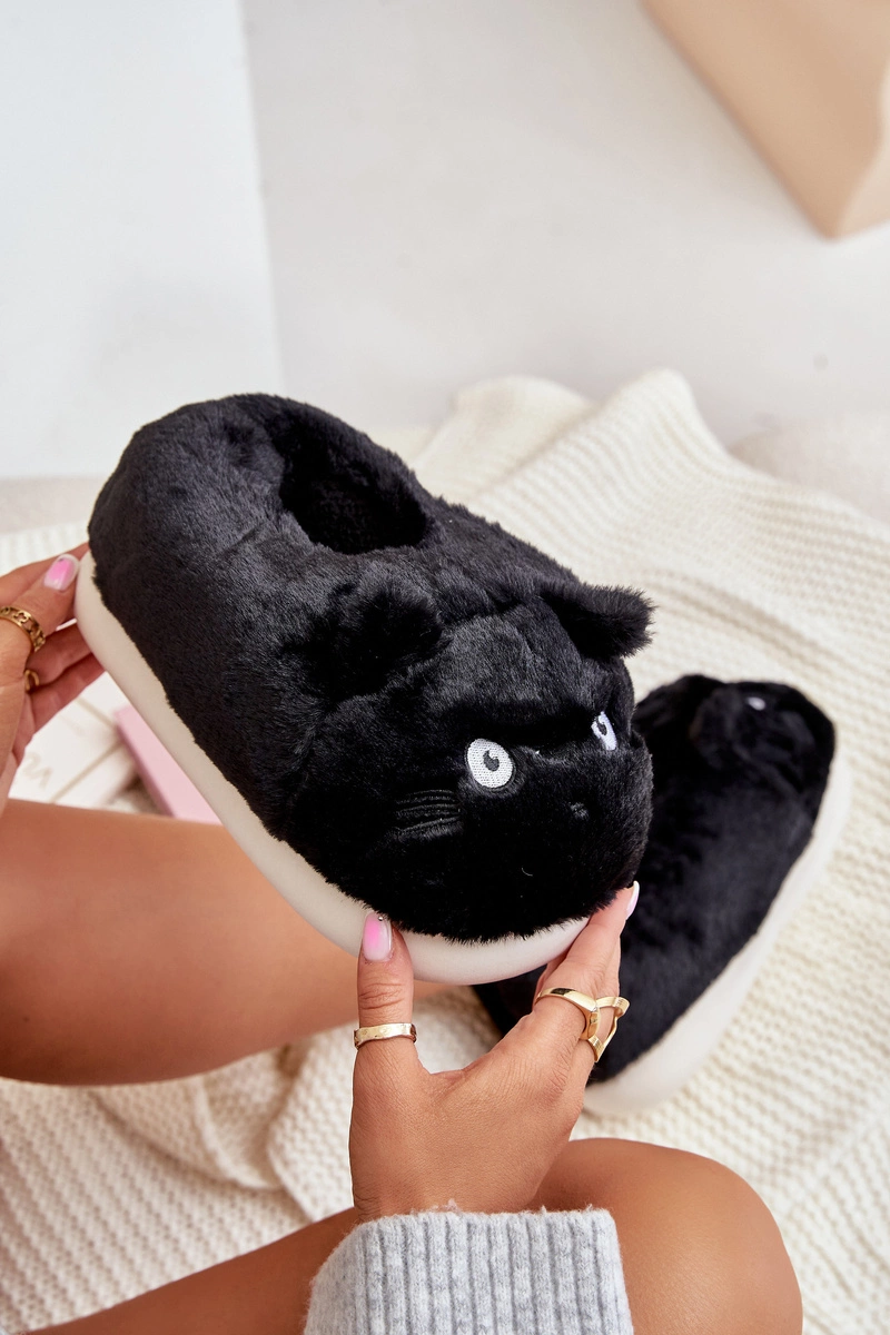 Damskie Futrzane Kapcie Kotki Czarne Iriviane