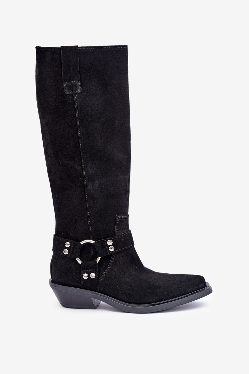 Zamszowe Kozaki Kowbojki Na Niskim Obcasie Z Ozdobą Zazoo 3656 Czarne