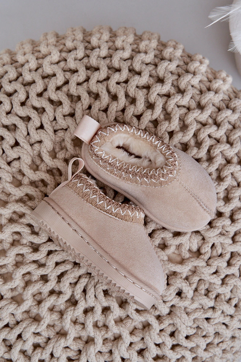 Śniegowce Botki Dziecięce Na Platformie Ocieplane Futerkiem Jasnobeżowe Vilabria