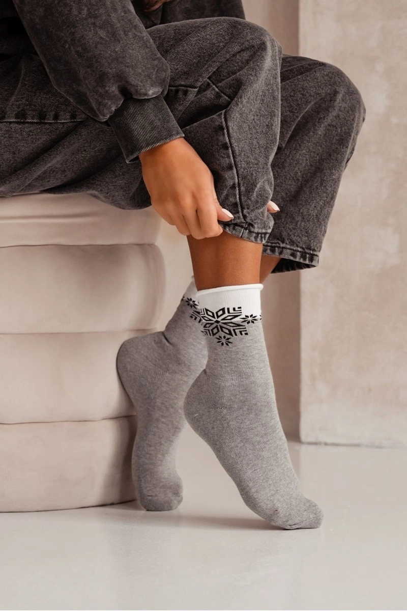 Skarpetki Damskie Świąteczne Półfrotte UNIQUE Bezuciskowe Gwiazdka Szare