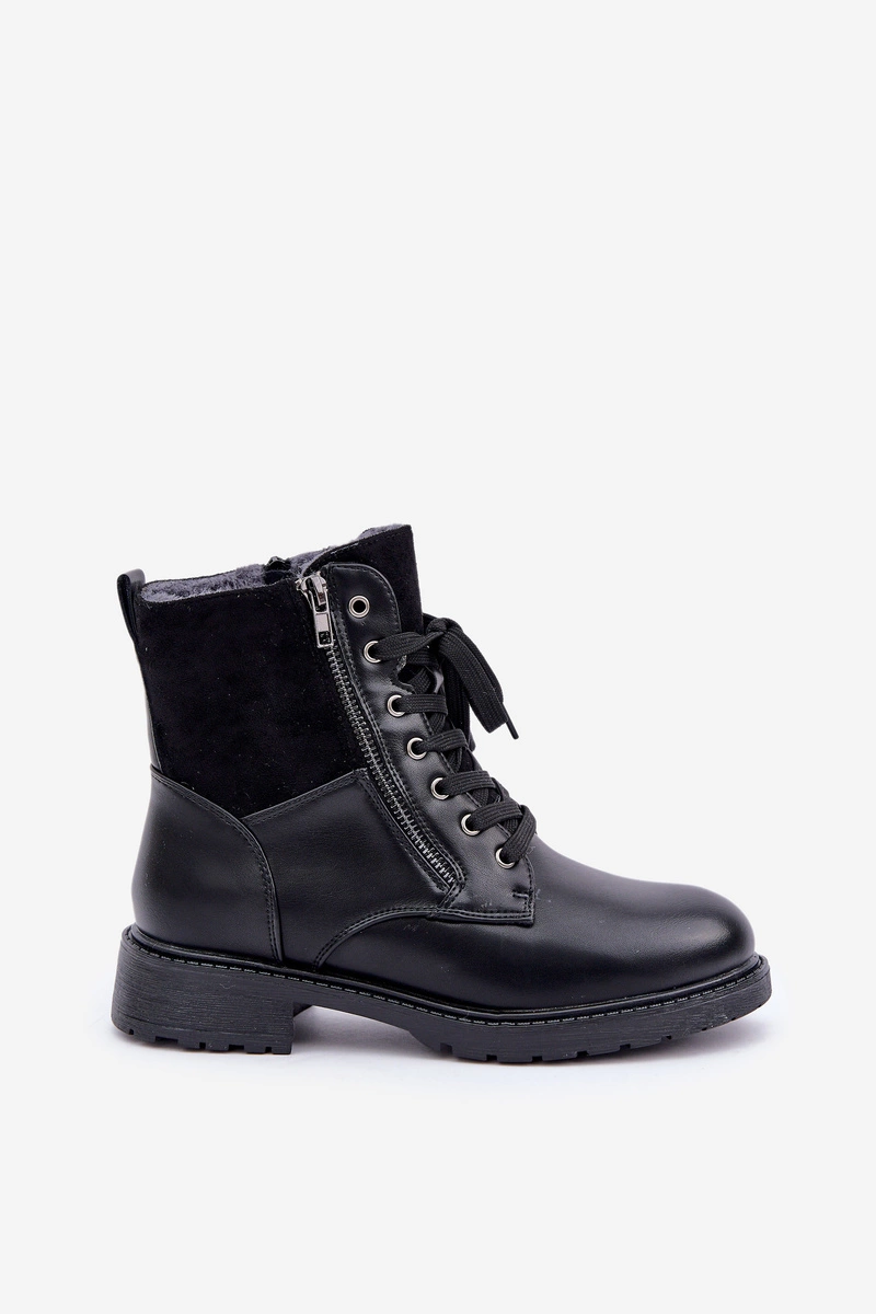 Ocieplane Botki Na Płaskim Obcasie Eko Skórzane Czarne Naoise