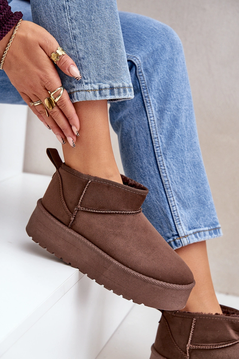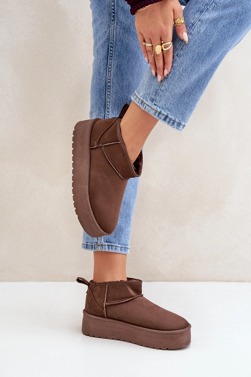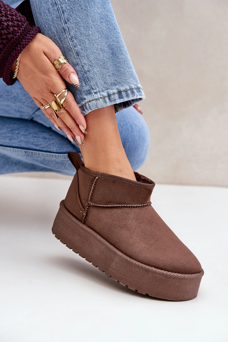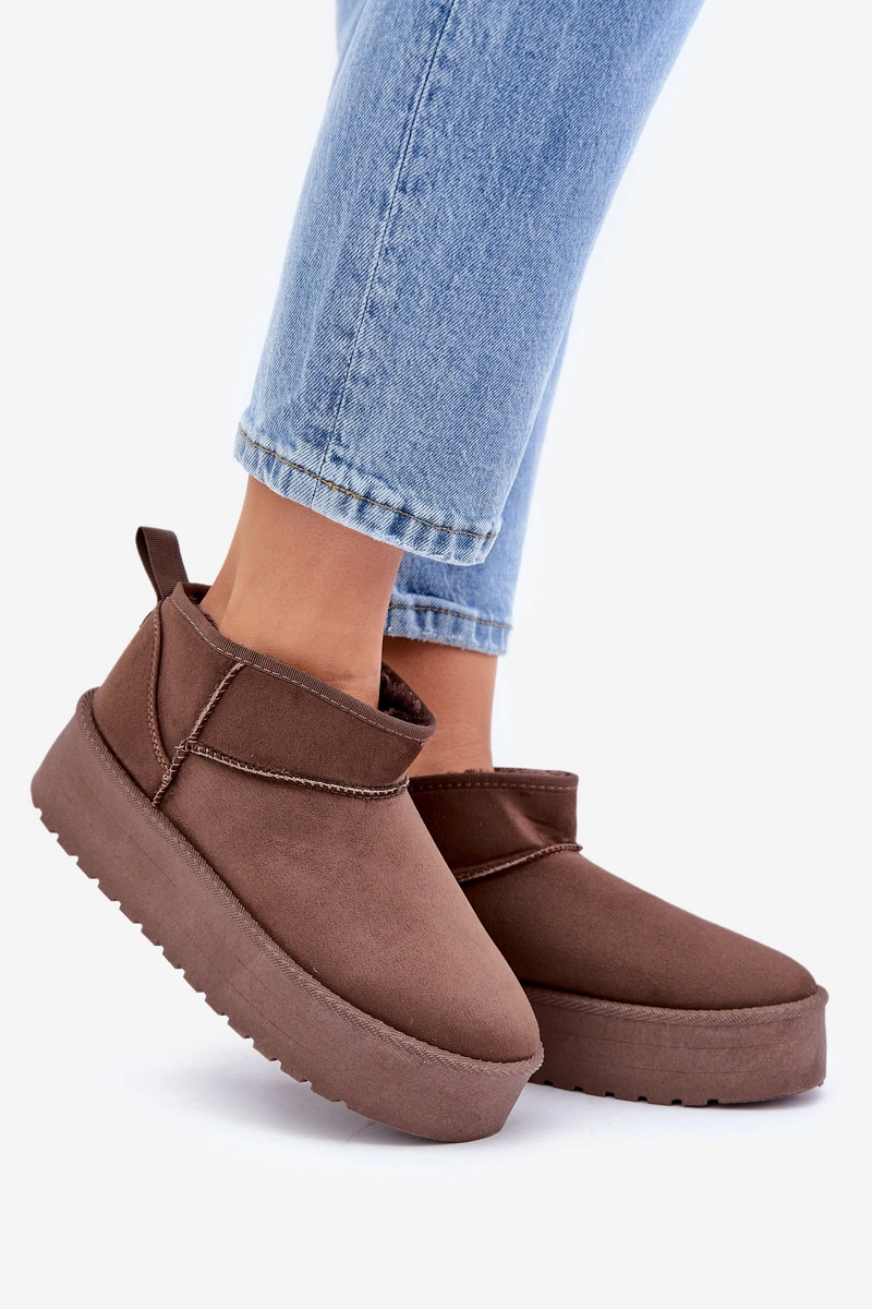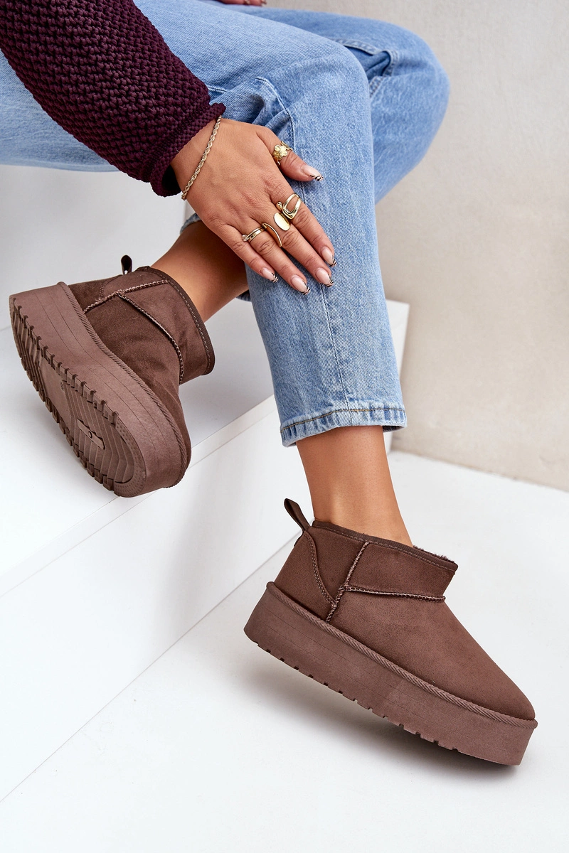 Niskie Śniegowce Na Platformie Brązowe Korfedi